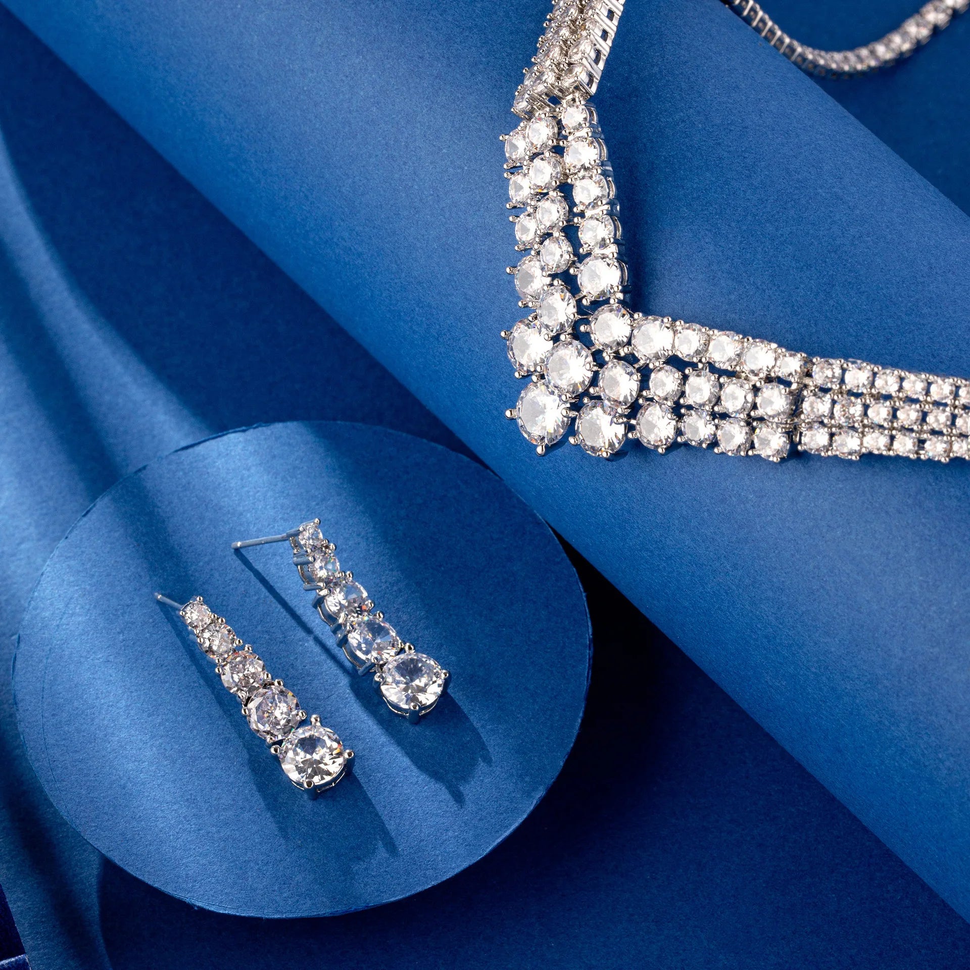 Luxury Style AAA Zircon Bridal Jewelry Set - 4-Piece (Bracelet, Necklace, Earrings, Ring) for Weddings, Parties & Evening Gowns