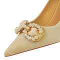 Luxury Women 7cm High Heels Wedding Replica Pumps Lady Luxury Designer Metal Chain Buckle High Heels Stiletto Women Dress Shoes