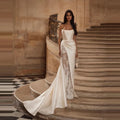 Luxury Women Wedding Dresses Mermaid Appliques High Side Split Bridal Gowns Sleeveless Boat Neck Princess Vestidos Customized