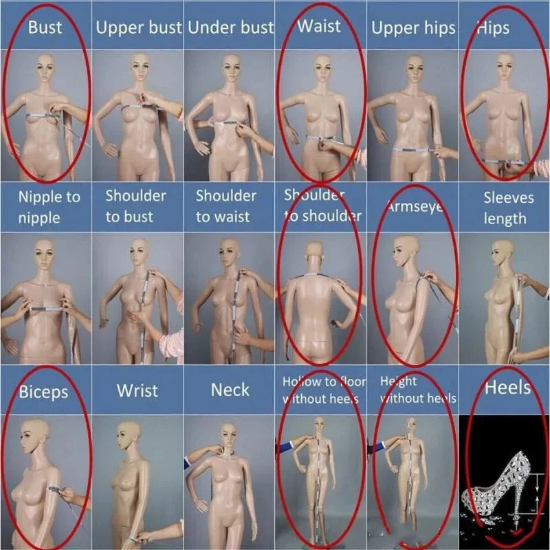 • Bust: measure across the fullest part, tape parallel to the floor.