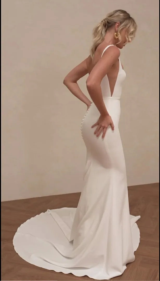 Mermaid Wedding Dresses 2025 Square Collar Formal Evening Dress For Bride Backless Sexy Civil Bridal Dress Court Train Customizd