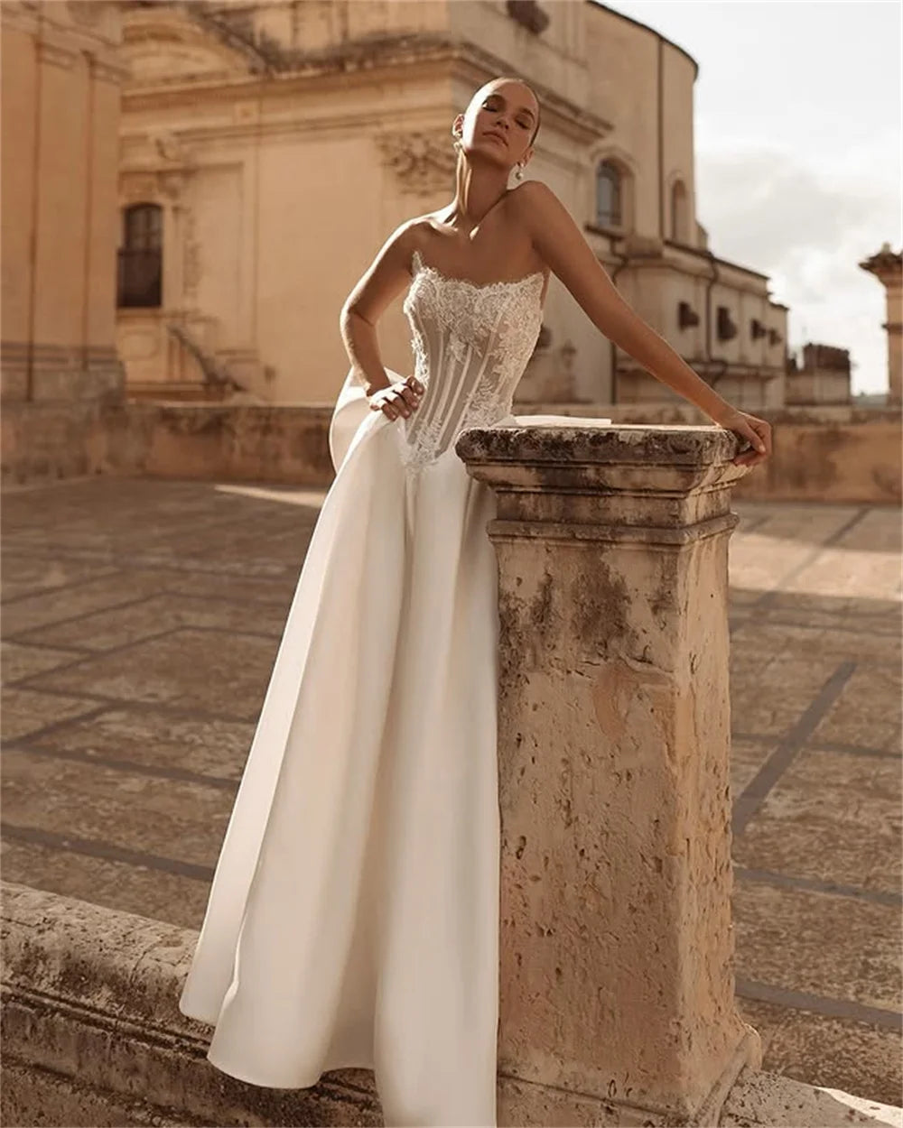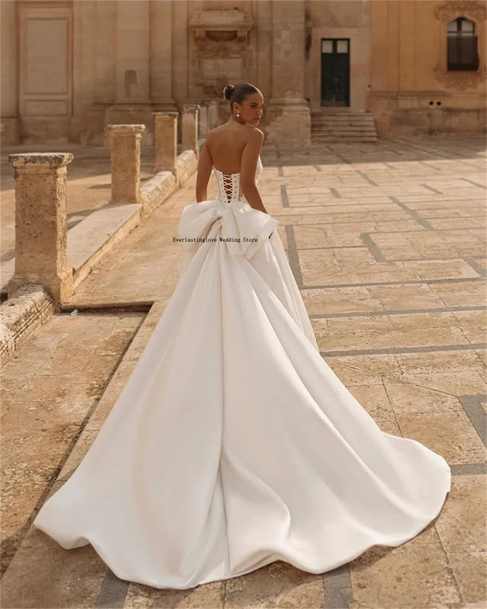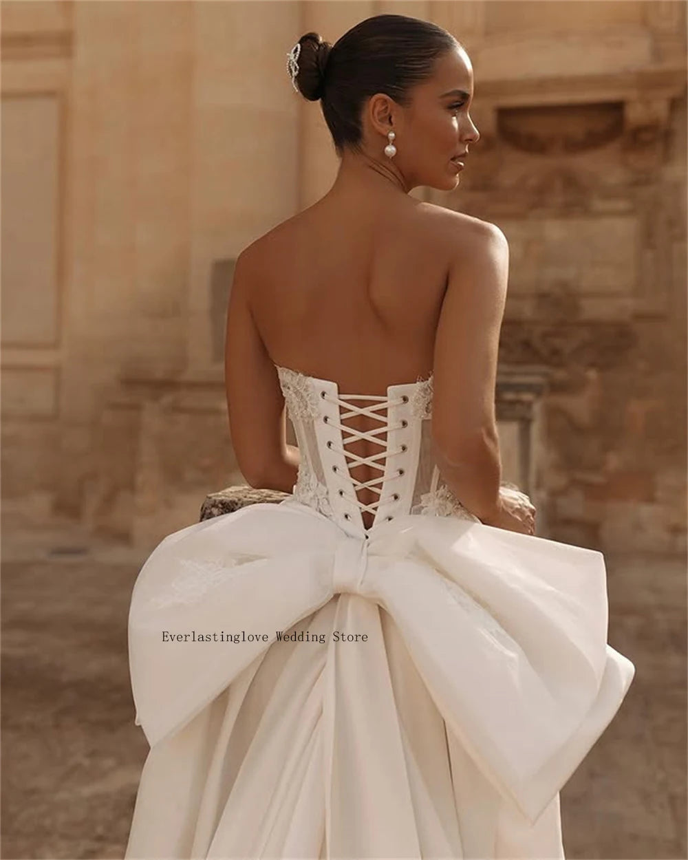 Moden Scoop Neckline Lace Applique Bridal Grown A Line Wedding Dresses Big Back Bow Custom Made 2025 Rode De Morriew