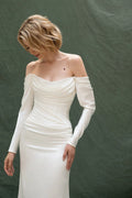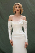 Modern Long Sleeves Pleat Satin Mermaid Wedding Dresses Sweep Train Custom Made 2024 Vestido De Noival