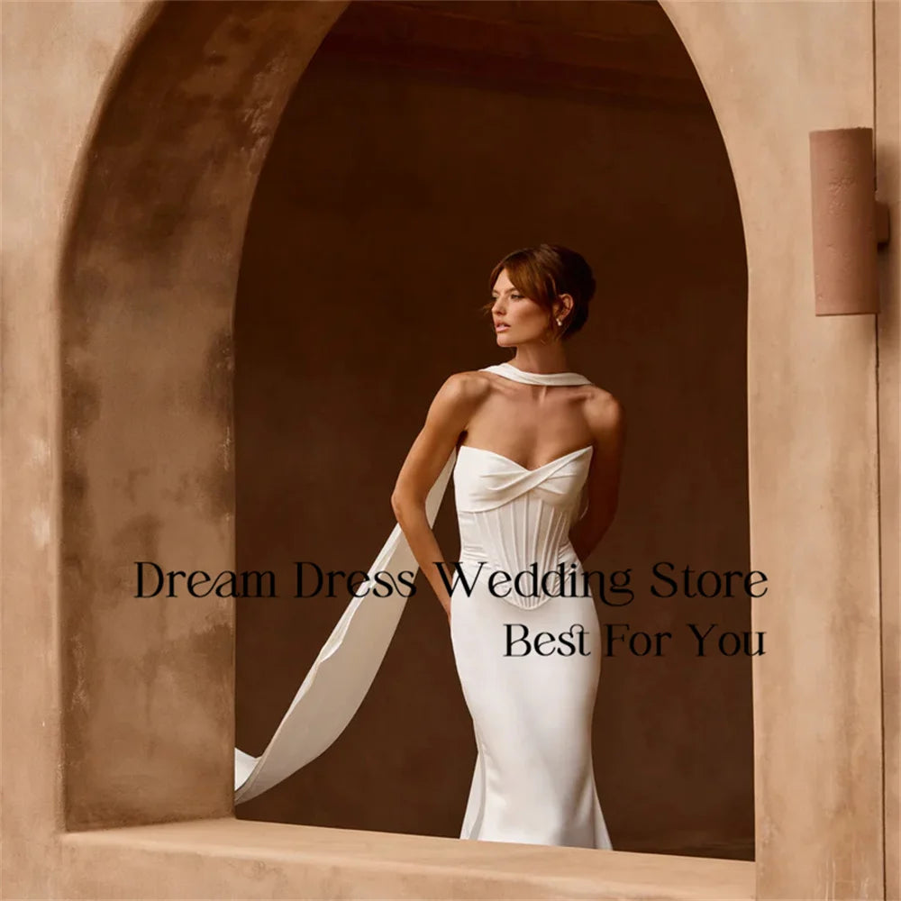Modern Mermaid Wedding Dress Women 2025 Pleat V-Neck Open Back Sleeveless Strapless Bridal Gown Vestidos De Novia Customized