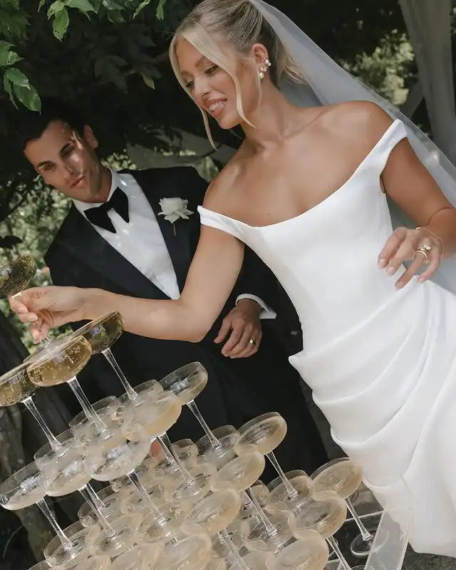 Modern Off The Shoulder Satin Sheath Mermaid Wedding Dresses Custom Made Bridal Grown 2025 Vestido De Noival