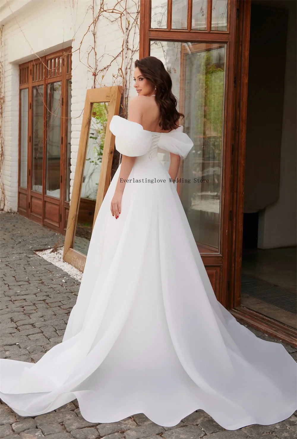 Modern Pleat Off The Shoulder Organza A Line Wedding Dresses Side Slit Bridal Grown 2026 Vestido De Noival
