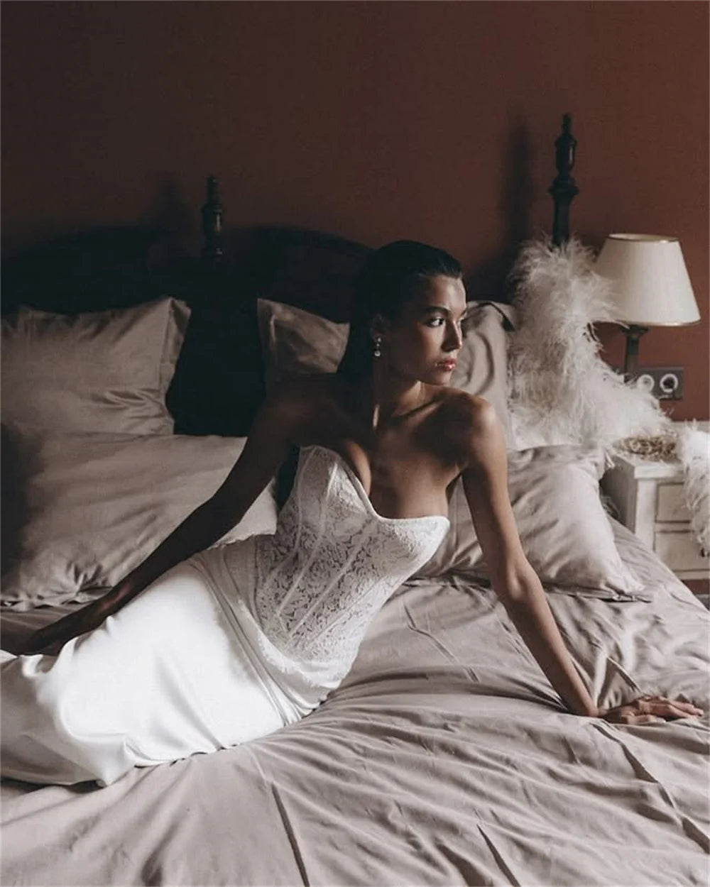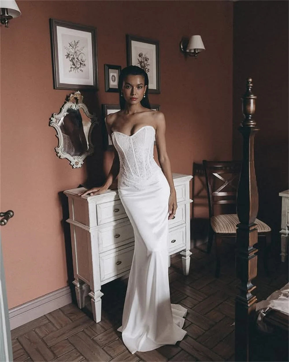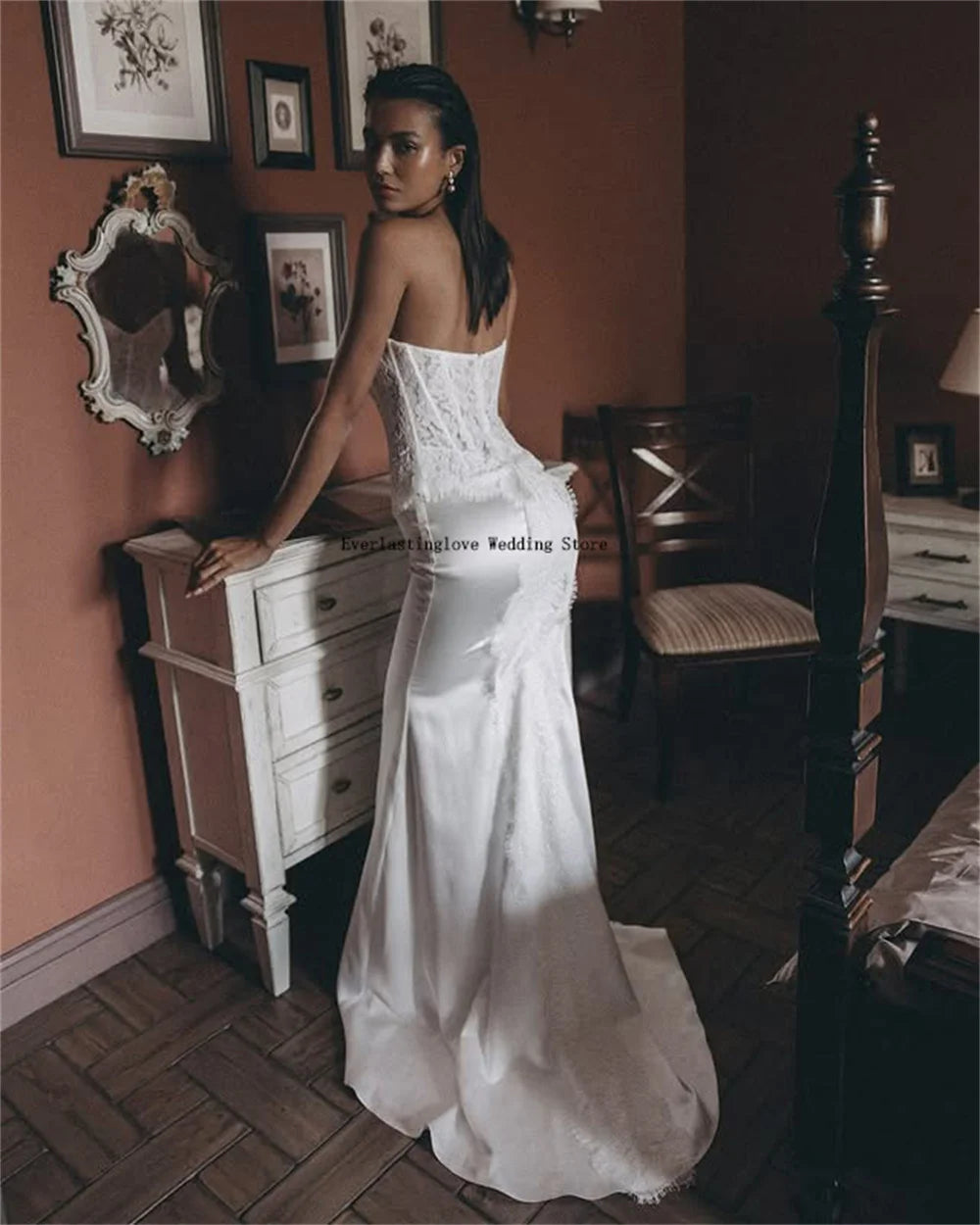 Modern Sweethart Lace Satin Mermaid Wedding Dresses Sweep Train Custom Made 2025 Vestido De Noival