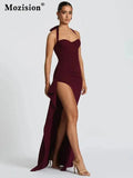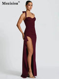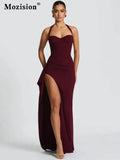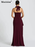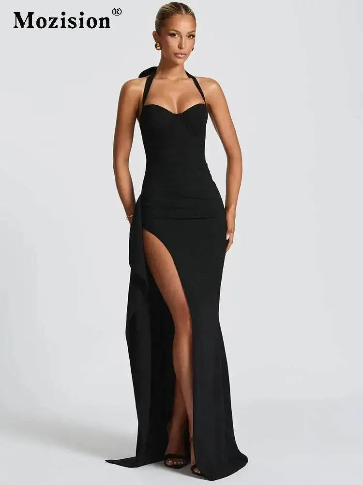 Mozision Halter Backless Sexy Maxi Dress Women Fashion Lace-up Sleeveless High Waist Thigh High Split Bodycon Evening Club Dress