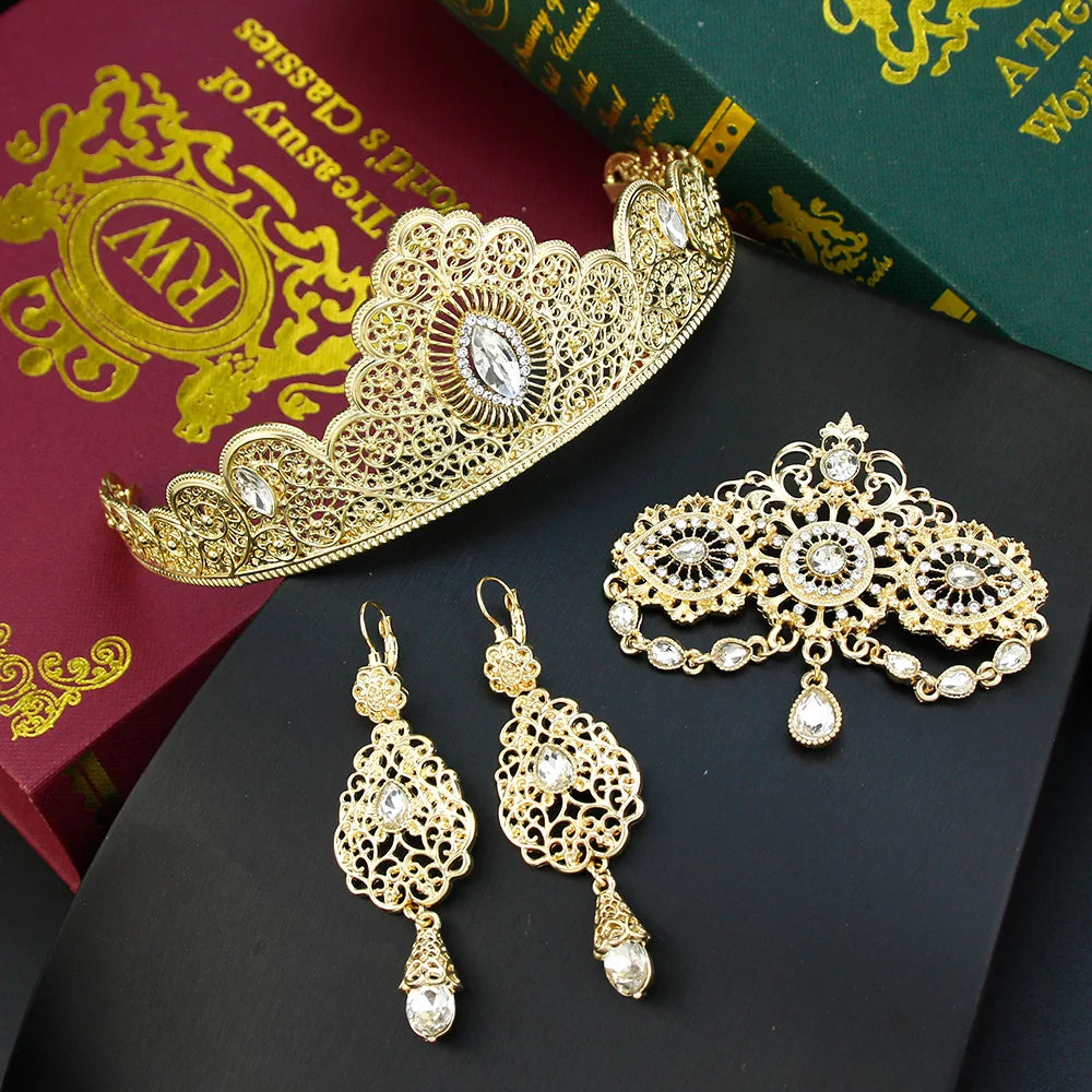 Neovisson Morocco Ladies Favorite Gift Crown Set Gold Color Cystal Hair Jewelry Tiaras Arabic Bride Wedding Jewelry Headband