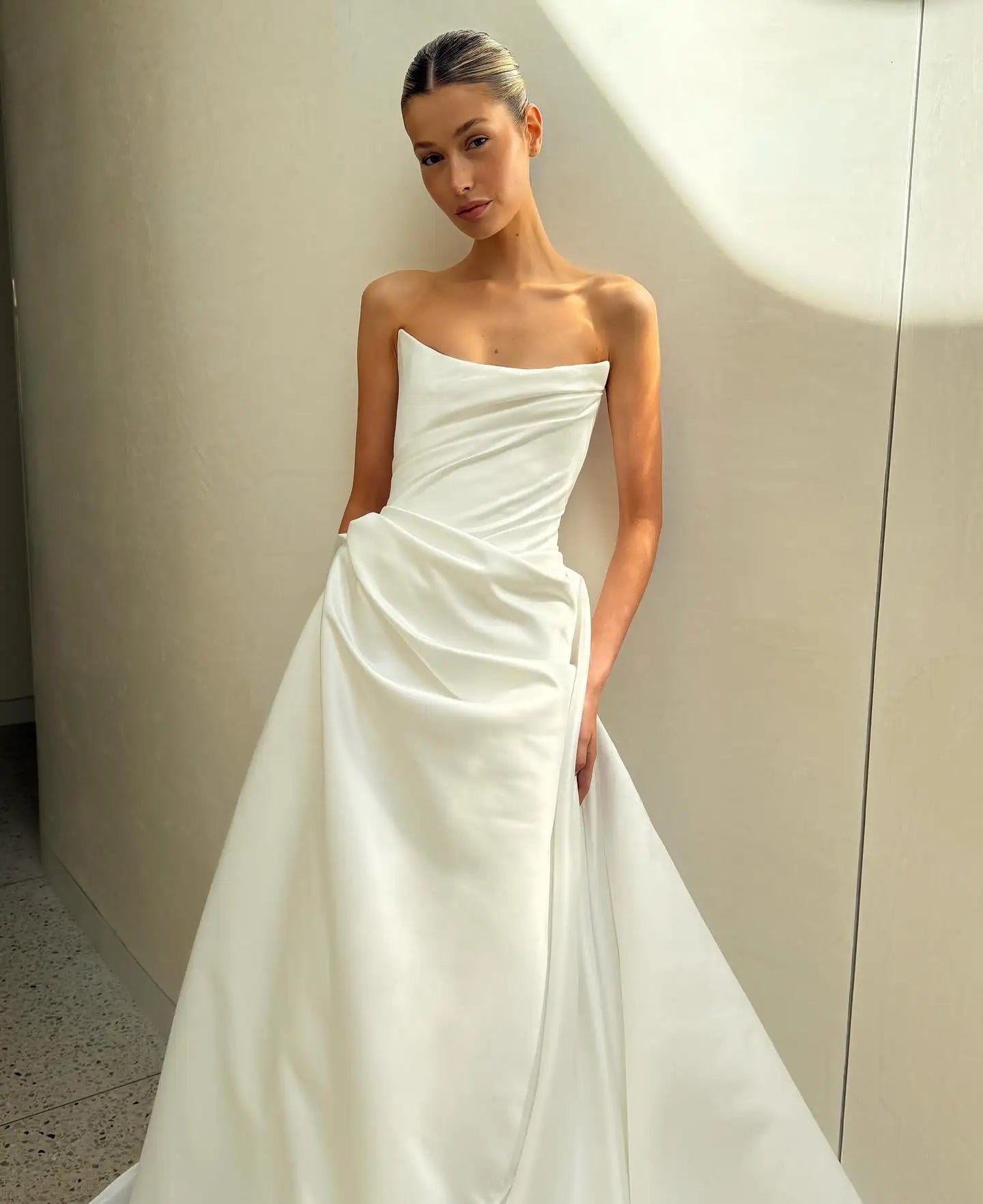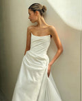 New Strapless Pleat Satin Mermaid Wedding Dresses Detachable Train Corset Back 2026 Vestido De Noival