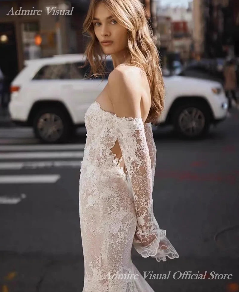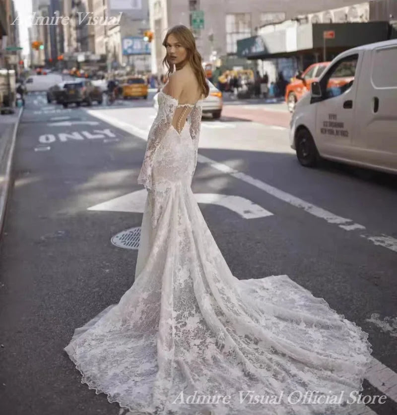 Newest Wedding Dresses Lace Mermaid Long Sleeves Off The Shoulder With Illusive Back Customized Bride Gowns Vestidos De Novia