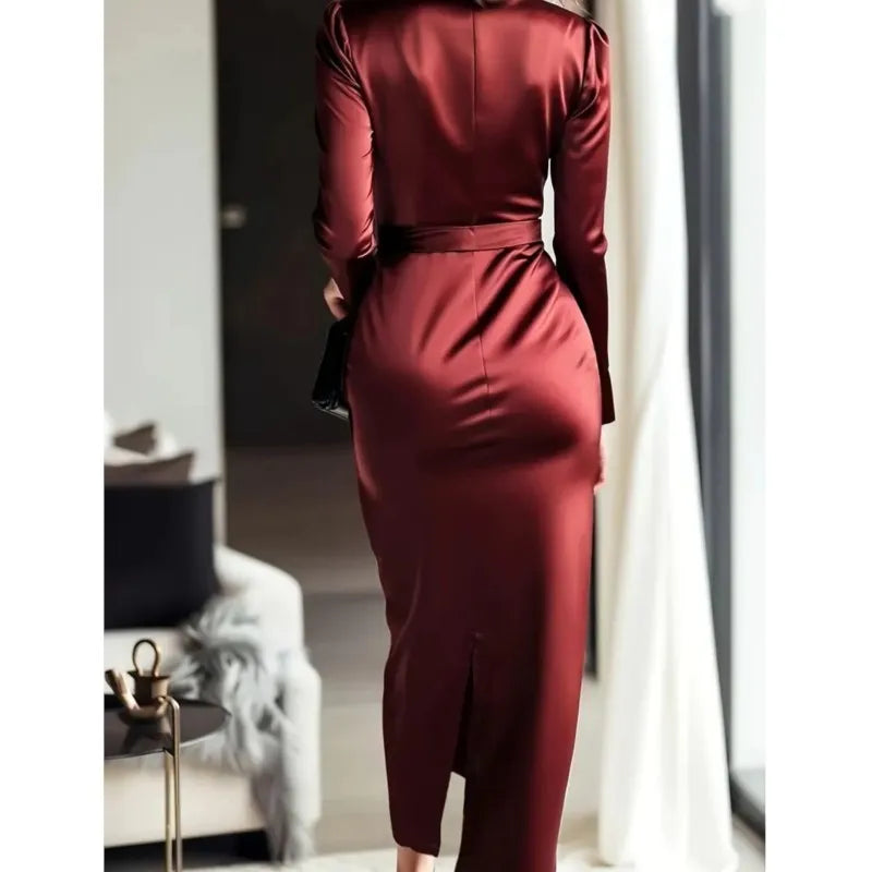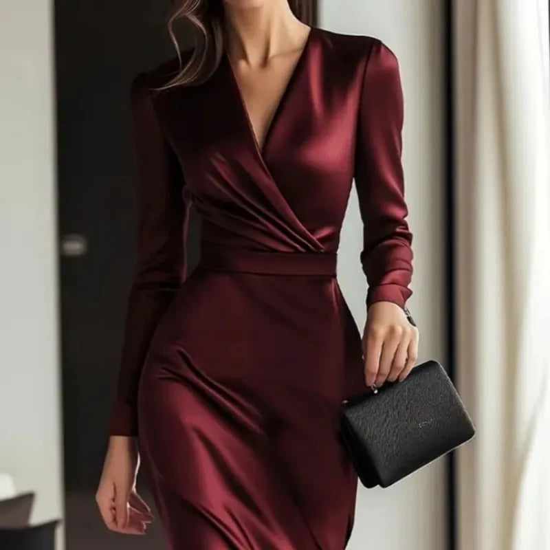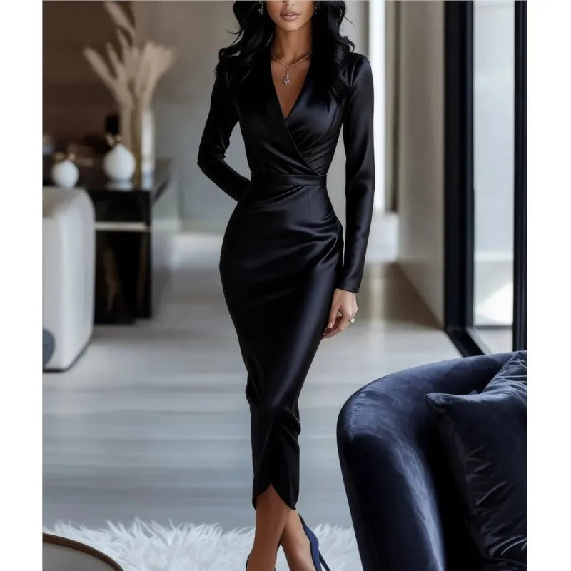 Party Dress Women's New Autumn Black Long-sleeved Deep V-neck Waist Slimming Elegant Folds Dresses For Women Robe Femal Vestidos