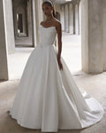 Popular Sweethart Lace Applique Satin bridal Grown A Line Wedding Dresses Sweep Train CUstom Made 2026 Vestido De Noival
