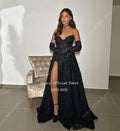 Qanz Sexy Lace Prom Dresses Sweetheart Black Mermaid Party Evening Elegant Celebrity High Slit Dress Party Night Customized