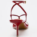 Model Number: Red Ankle-Wrap High Heeled Sandals Women