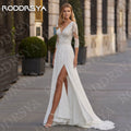 RODDRSYA Modern A Line Wedding Dress Chiffon Split Front Illusion Lace Three-Quarter Sleeves Bridal Dresses Open Back Customized