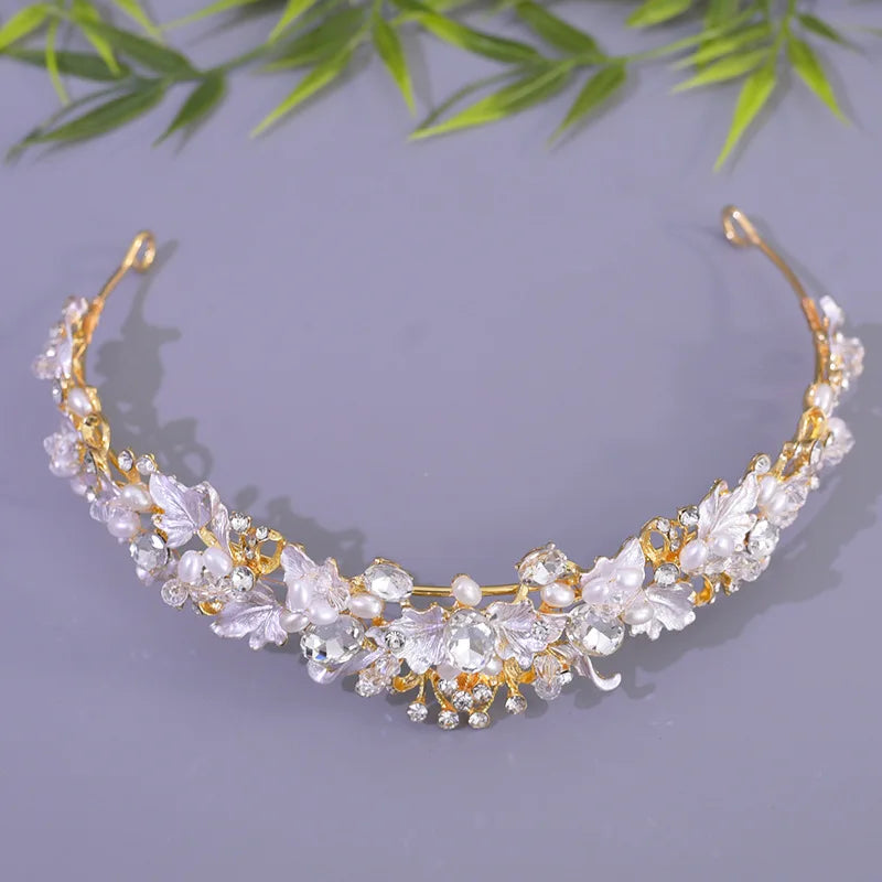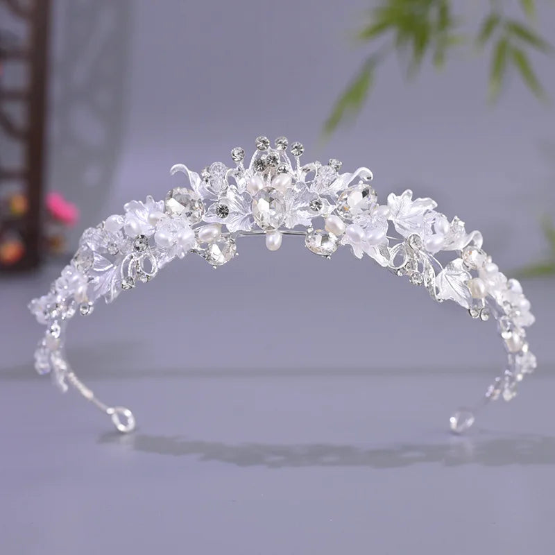 Model: Rhinestone Waterdrop Leaf Tiara Crown Headband