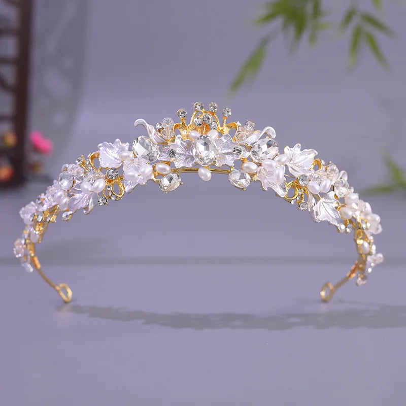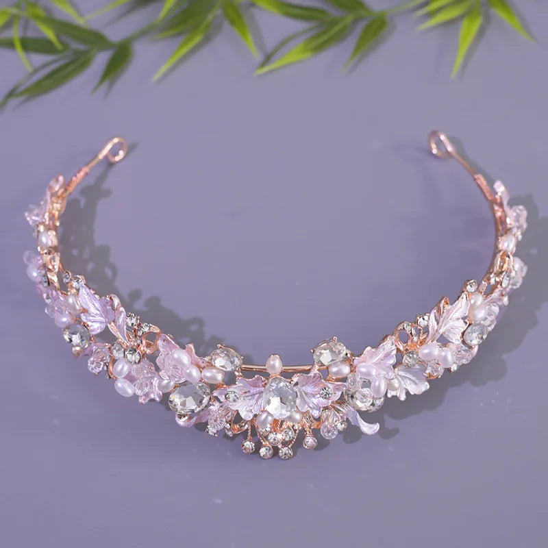 Pattern: Luxury Pink Gold Pearl Bridal Crowns