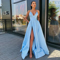 Royal Blue Satin Evening Dress Women Floor Length Suspenders High Split Bridal Formal Long Ball Gowns Trend Pageant Dress