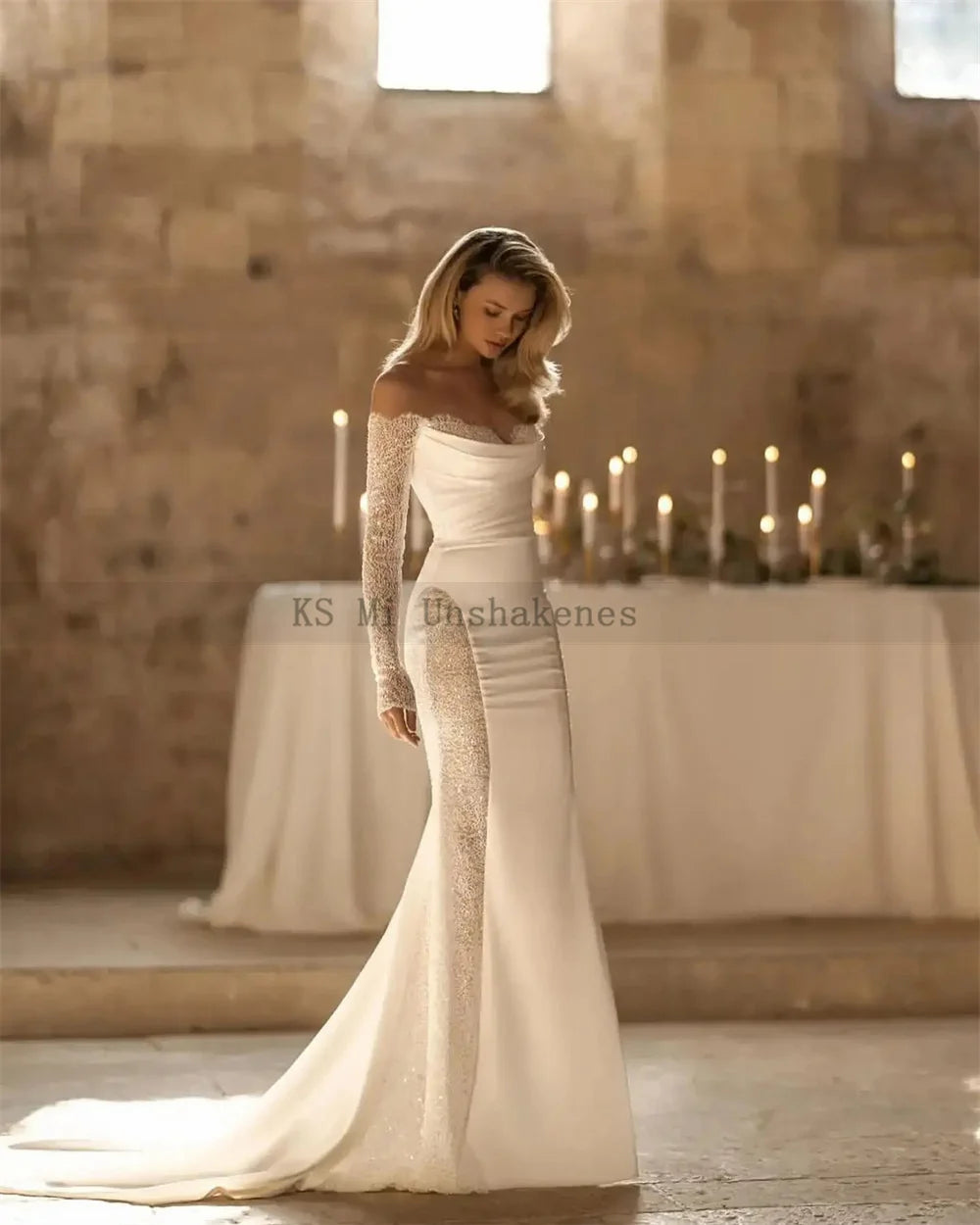 Sexy Mermaid Lace Long Sleeve Wedding Dresses 2025 Berta Bridal Dress Women Sweetheart Off Shoulder Wedding Gowns Customized