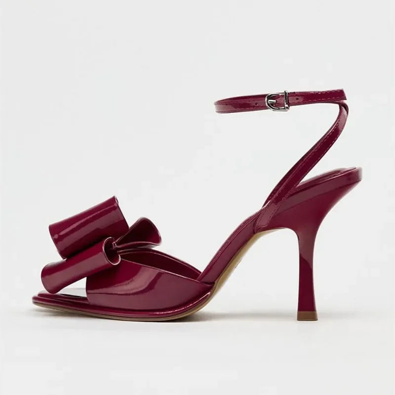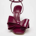 Sexy Patent Leather High Heels Ladies Butterfly-knot Square Toe Sandal Women Fashion Brand Wedding Party Dress Shoes Women Pumps