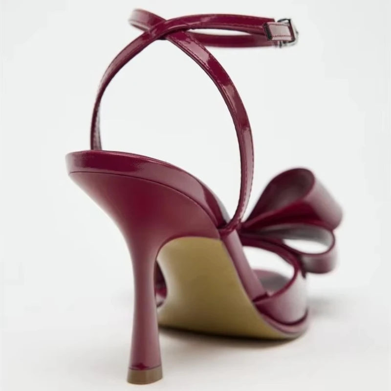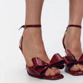 Model Number: Luxury Red Butterfly-knot Ankle Strap Heeled Sandals Women