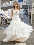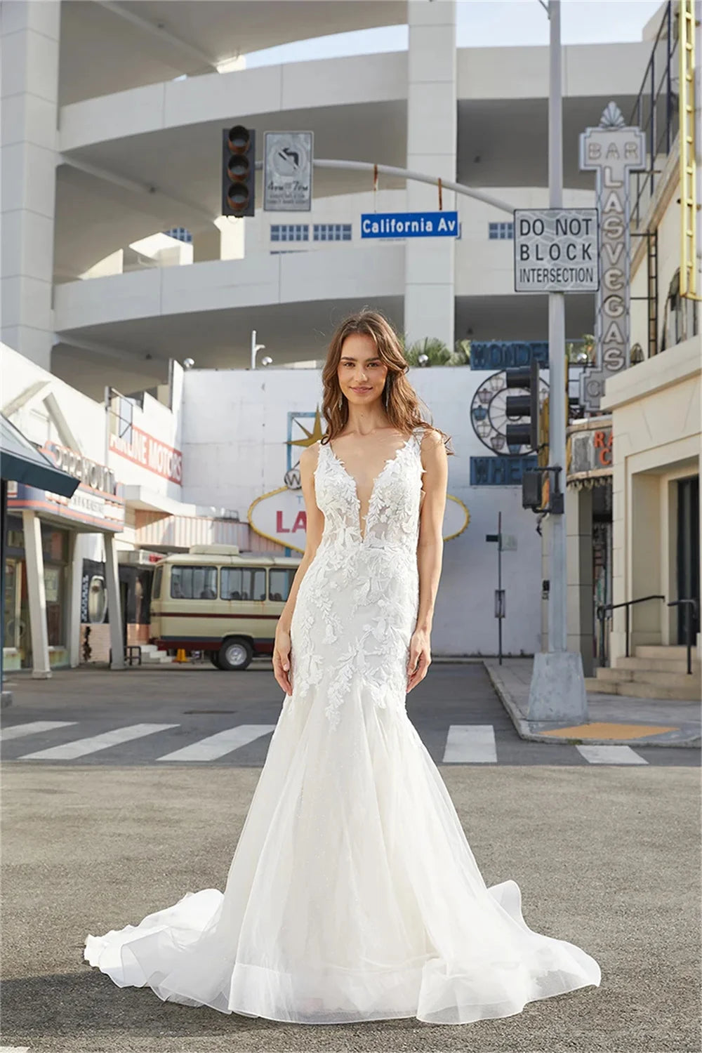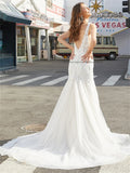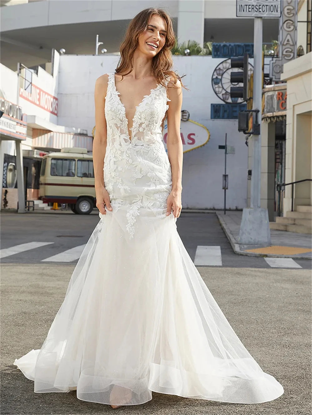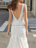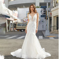 Sexy V-neck Two Straps Lace Applique Bridap Grown Mermaid Wedding Dresses Backless Sweep Train Custom Made  2026 Rode De Morrie