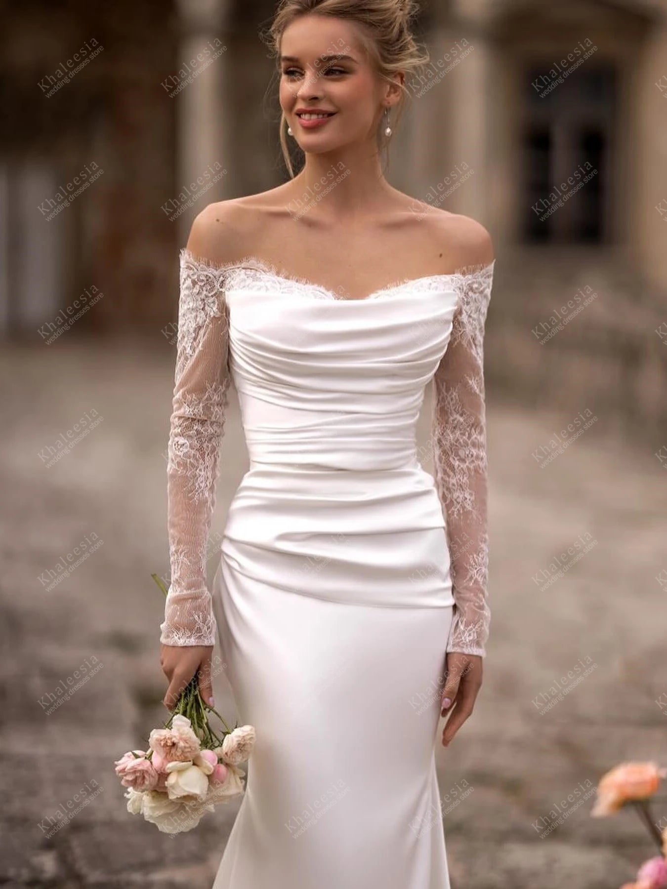 Sexy Wedding Dress Satin Bridal Gowns Lace Appliques Charming Robes Sweep Train Floor Length Vestido De Novia Customized 2025