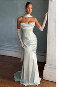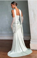 Simple Pleat Stapless Satin Sheath Wedding Dressed Wiht Long Scaf Custom Made Bridal Grown 2025 Vestido De Noival