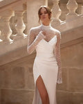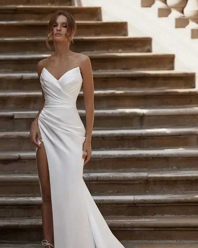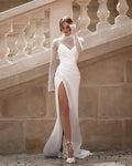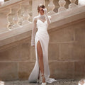Simple Pleat V-neck Satin Sheath Wedding Dresses With Long Sleeves Jacket Side Slit Custom Made 2025 Rode De Morrie