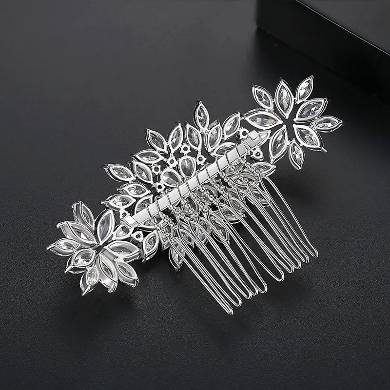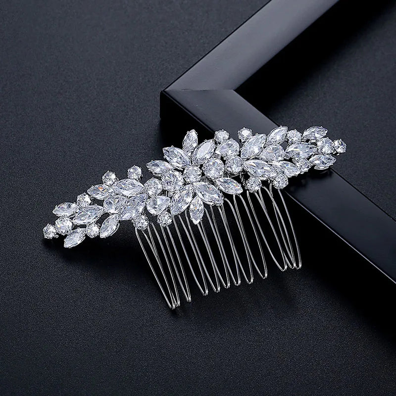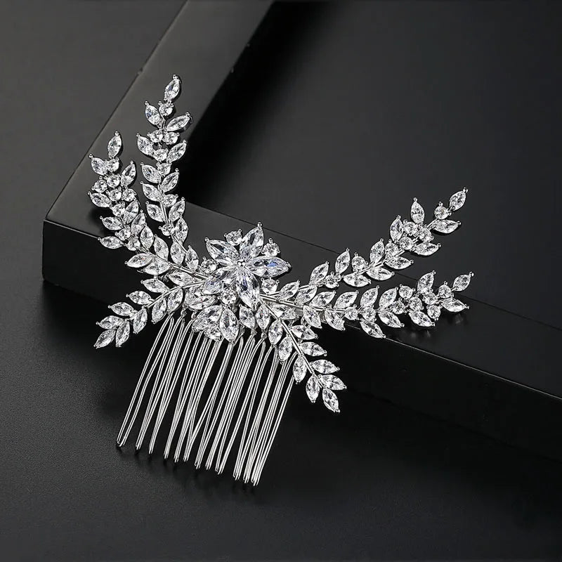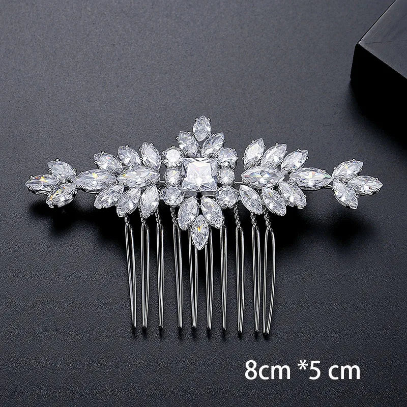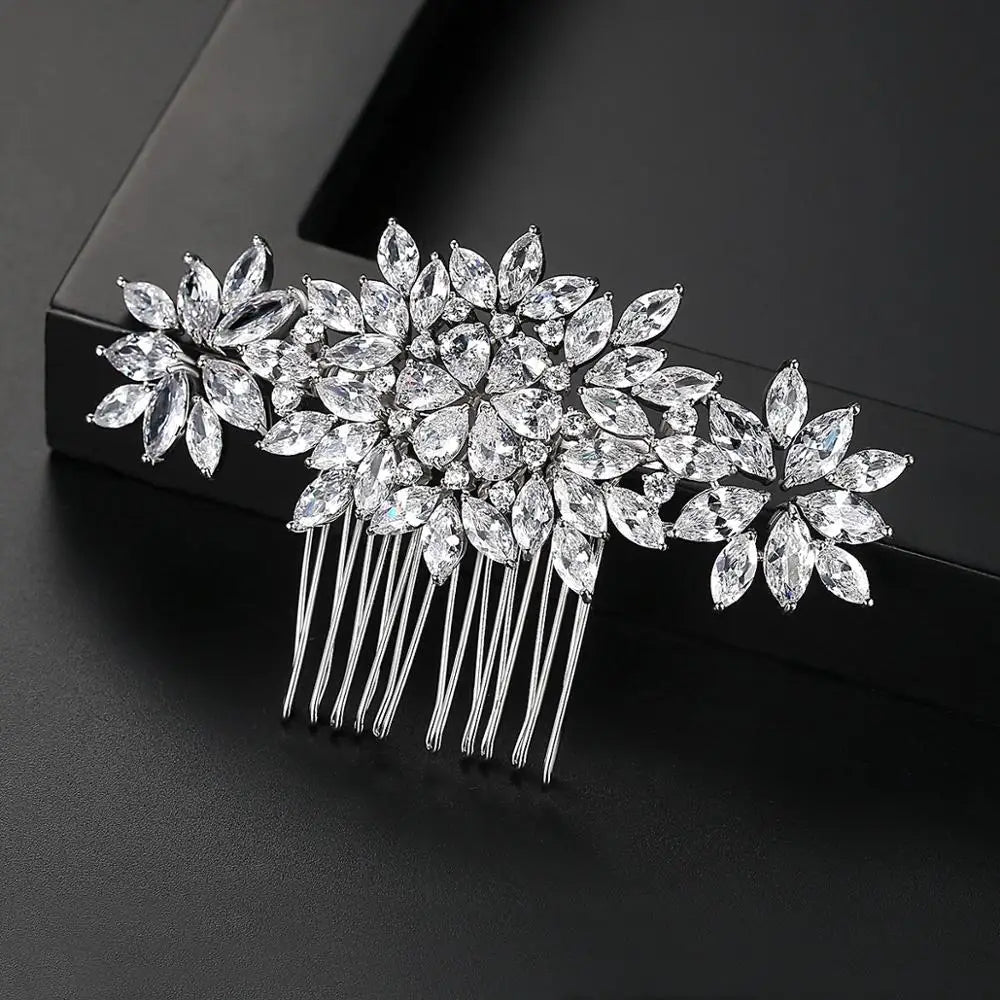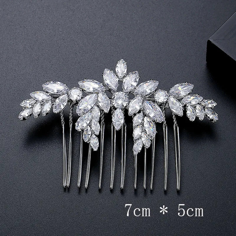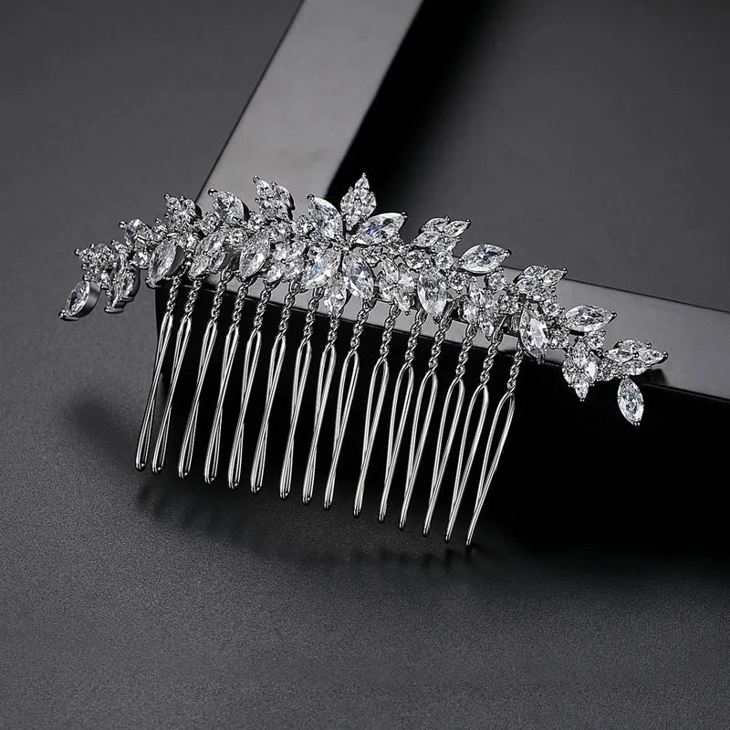 SLBRIDAL Luxury Trendy Prong Setting Cubic Zircon Bridal Hair Comb Wedding Headpieces Women Girls Jewelry Hair Accessories