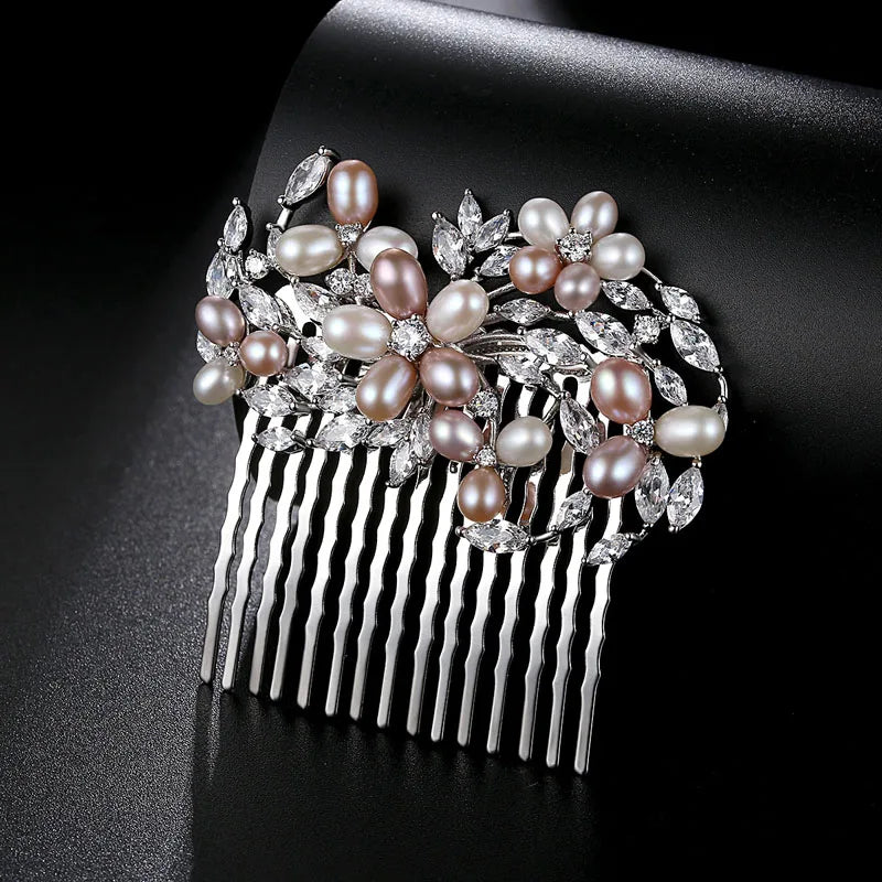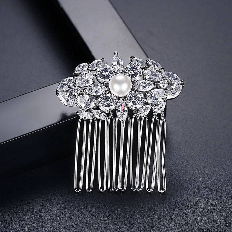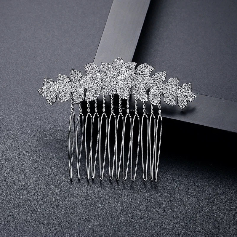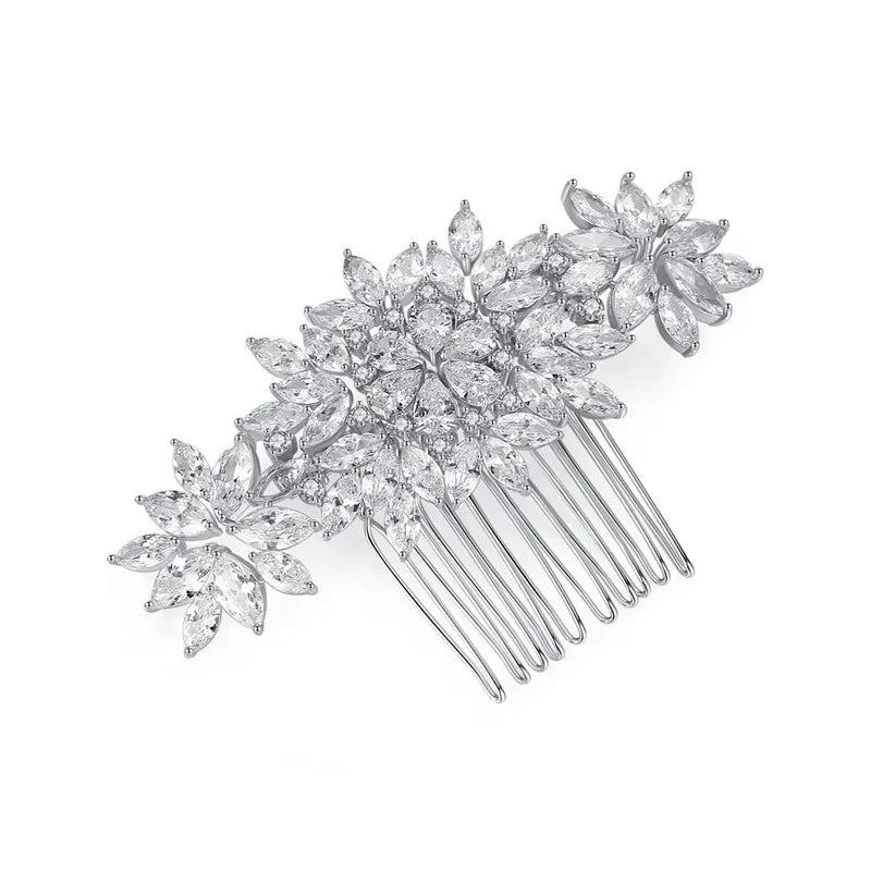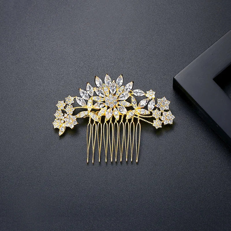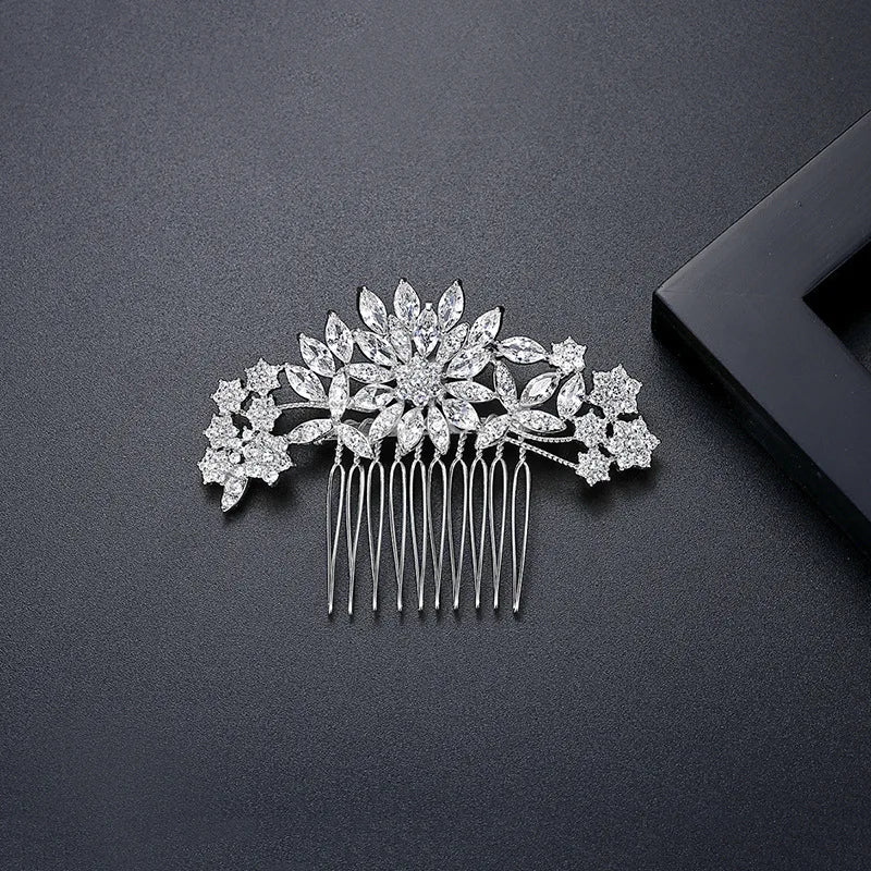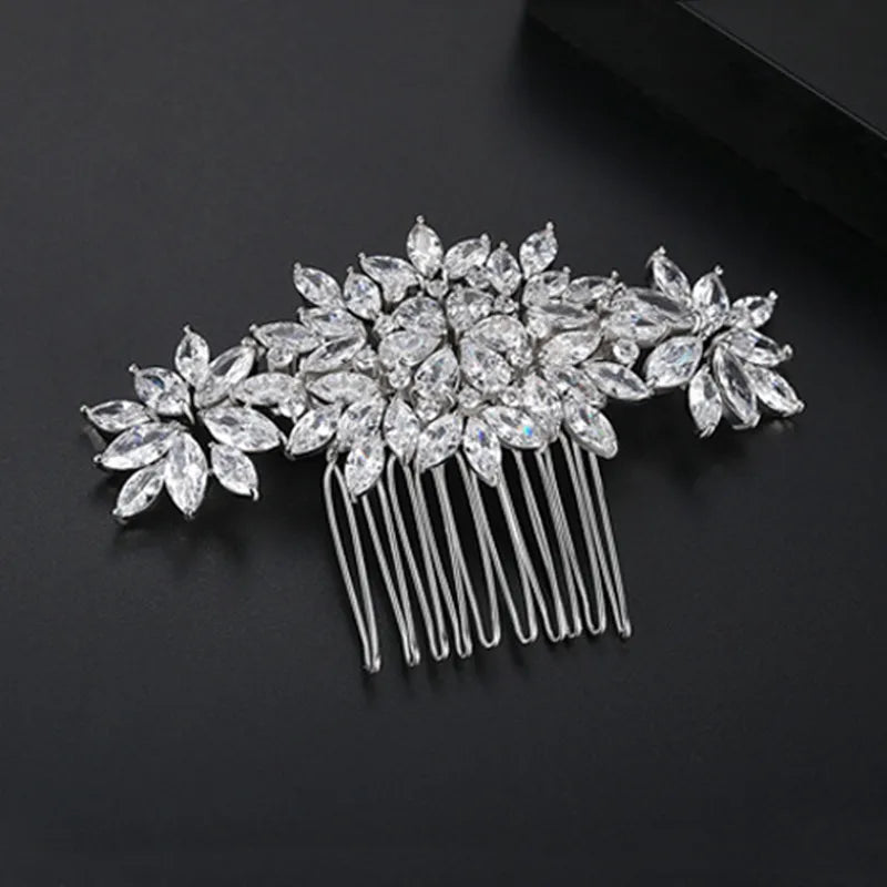 SLBRIDAL Luxury Trendy Prong Setting Cubic Zircon Bridal Hair Comb Wedding Headpieces Women Girls Jewelry Hair Accessories