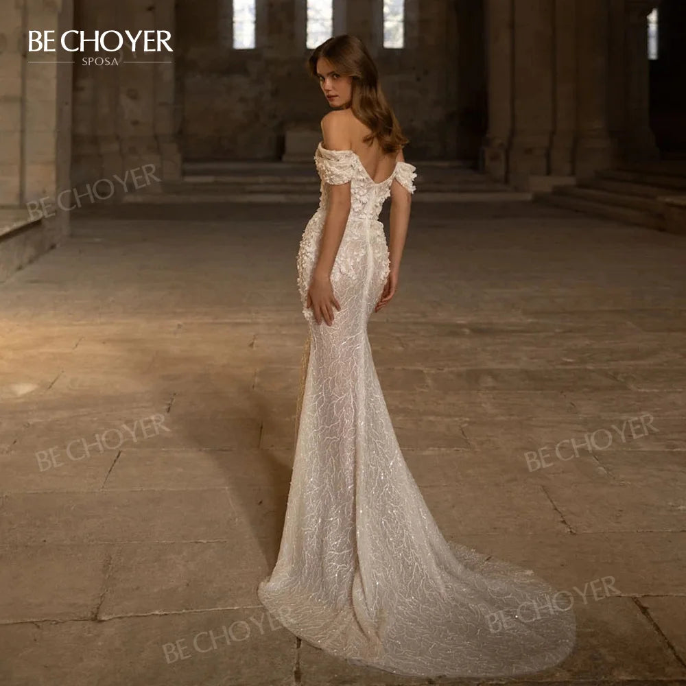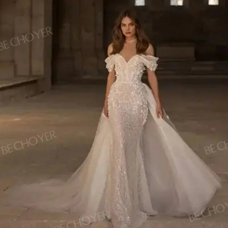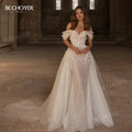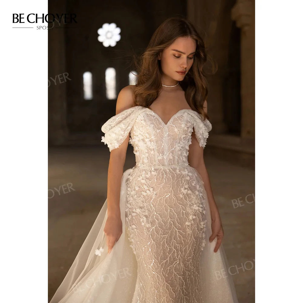 Sleeveless Wedding Dress 2025 Off the Shoulder Mermaid Detachable Train Bride Gown customized BECHOYER EL278 Vestido de Noiva