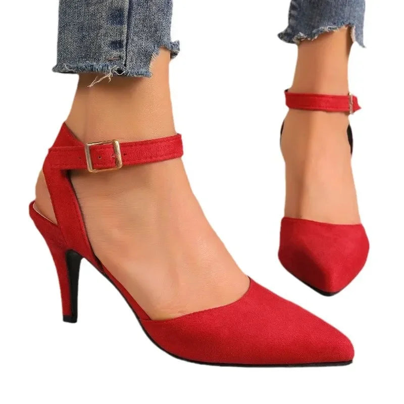 Summer Hot Sale Of The Season Women's Pointed Toe High Heels Fashion Single Shoes Thin Heel Wrap Head Sandals Crossbuckles PU Le