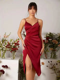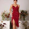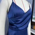 Summer New Style Ladylike Sexy Dress V-neck Backless Slim Slimming High Slit Suspender Folds Clubwear Fashion Dresses For Women