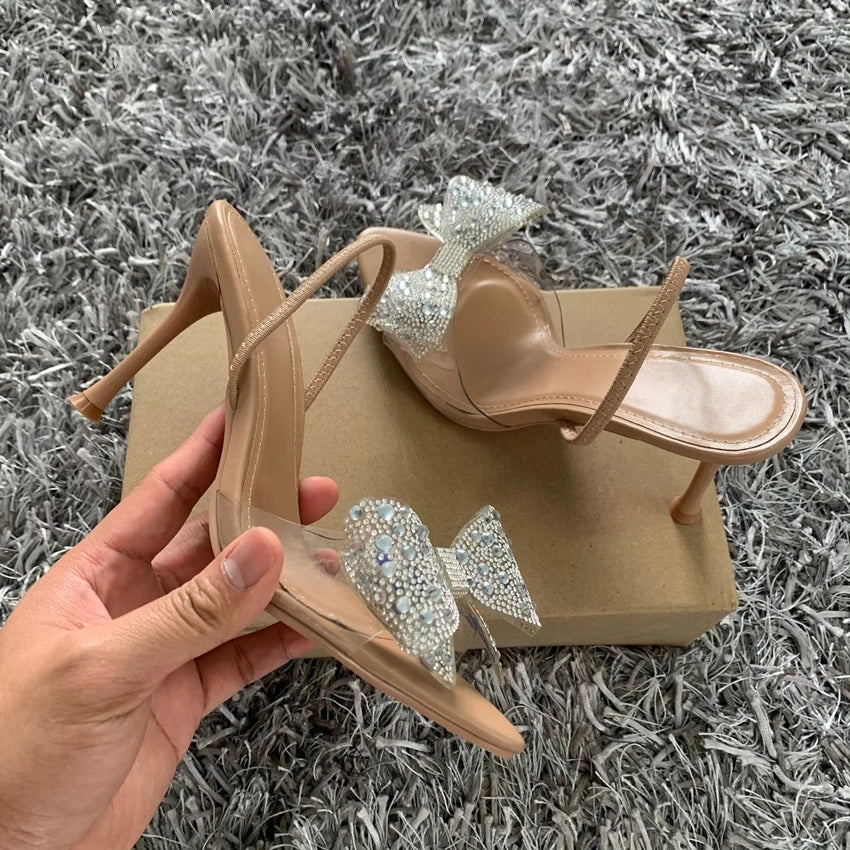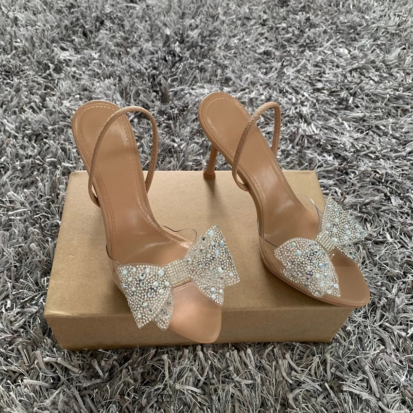 Summer Women High Heel Sandals Transparent PVC Heels Luxury Rhinestone Bow Slingbacks Female Sexy Party Wedding pumps Shoes