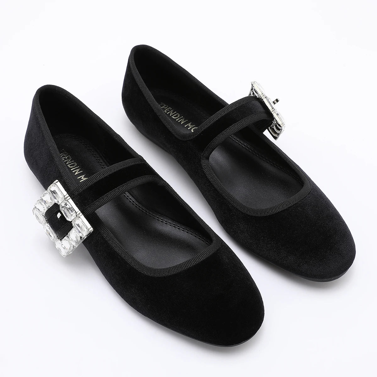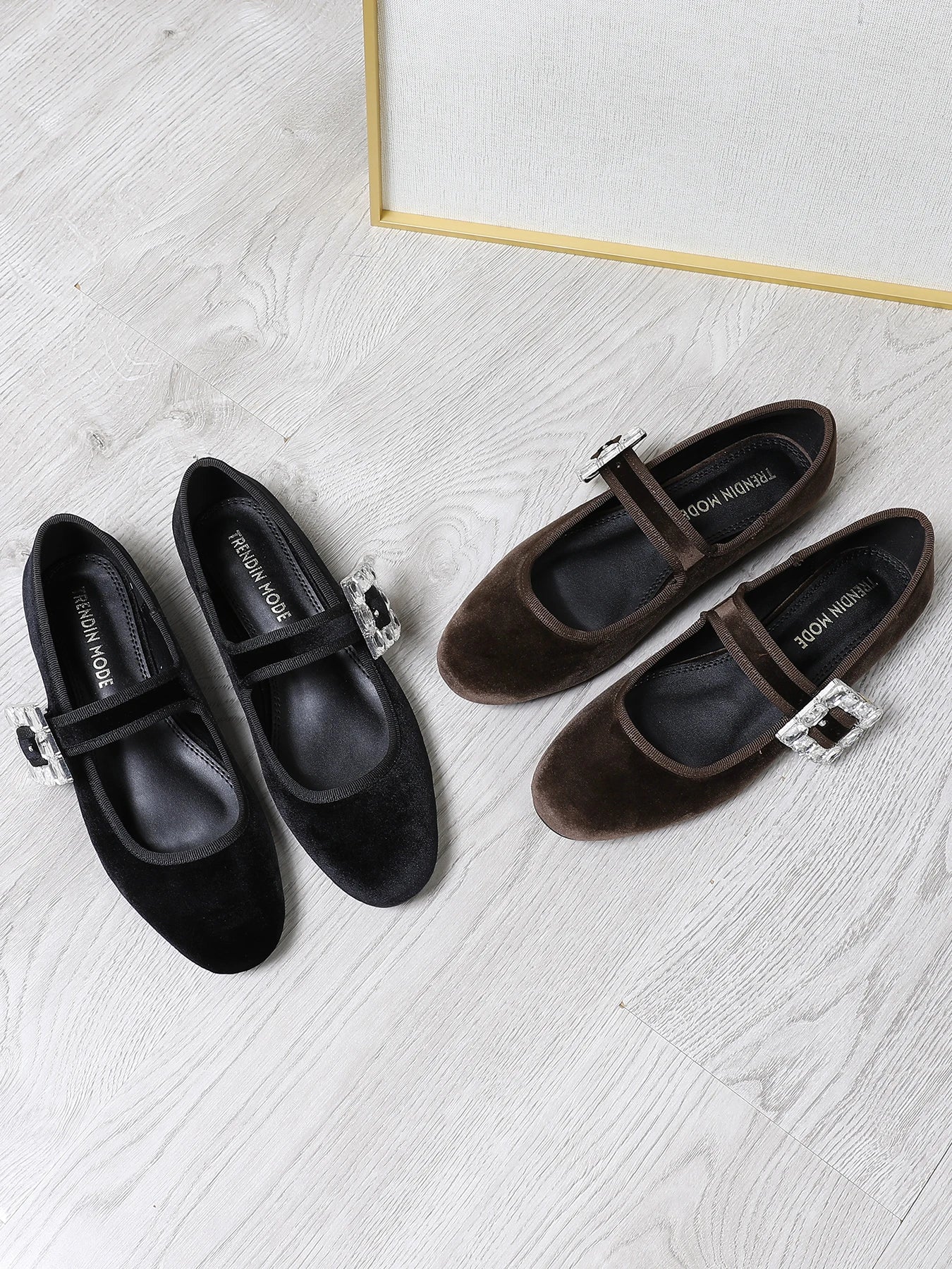 Trendin Mode Women's Mary Jane Fashion Round Toe Ballet Flats Comfortable Ankle Strap Suede Shoes