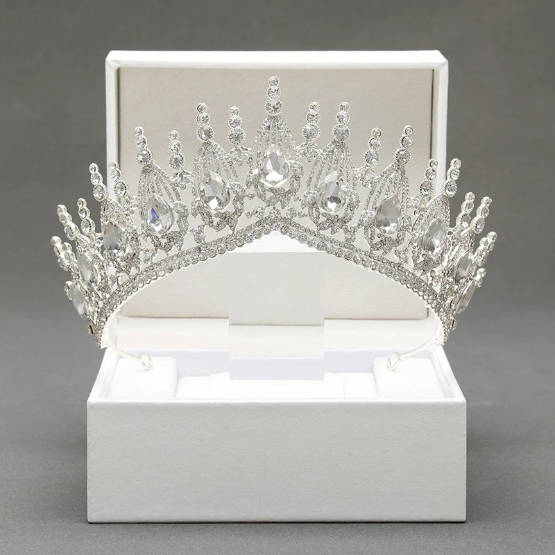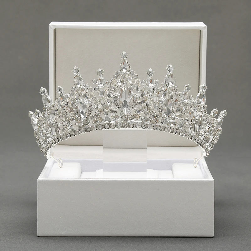 Trendy Silver Color Rhinestone Crystal Queen Big Crown Bridal Wedding Tiara Women Beauty pageant Bridal Hair Accessories Jewelry