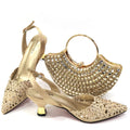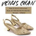 Venus Chan 2024 Latest High Heel Gold Color Atmospheric Luxury Pattern With Rhinestones Party Ladies Shoes And Bag Set