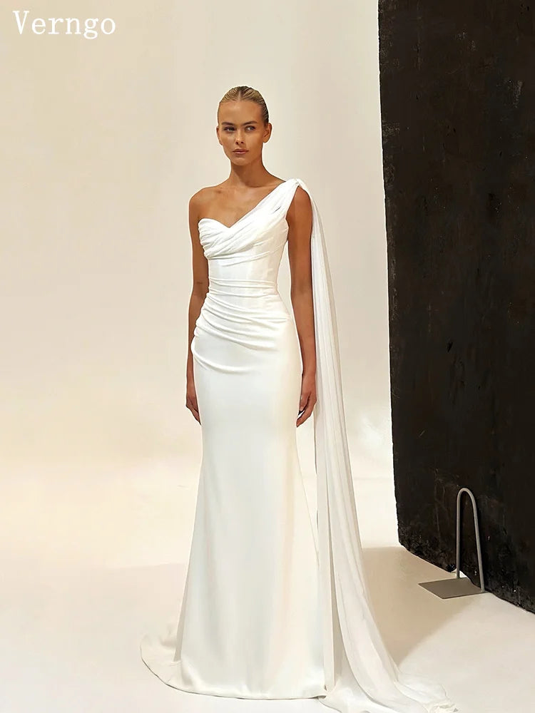 Verngo lvory Satin Wedding Dress One Shoulder Mermaid Bridal Gowns Elegant Sweap Train Women Bride Dress Customized