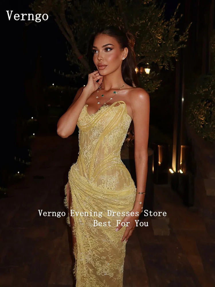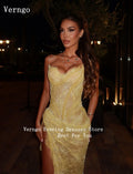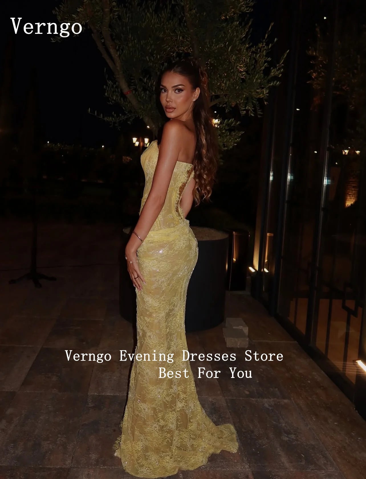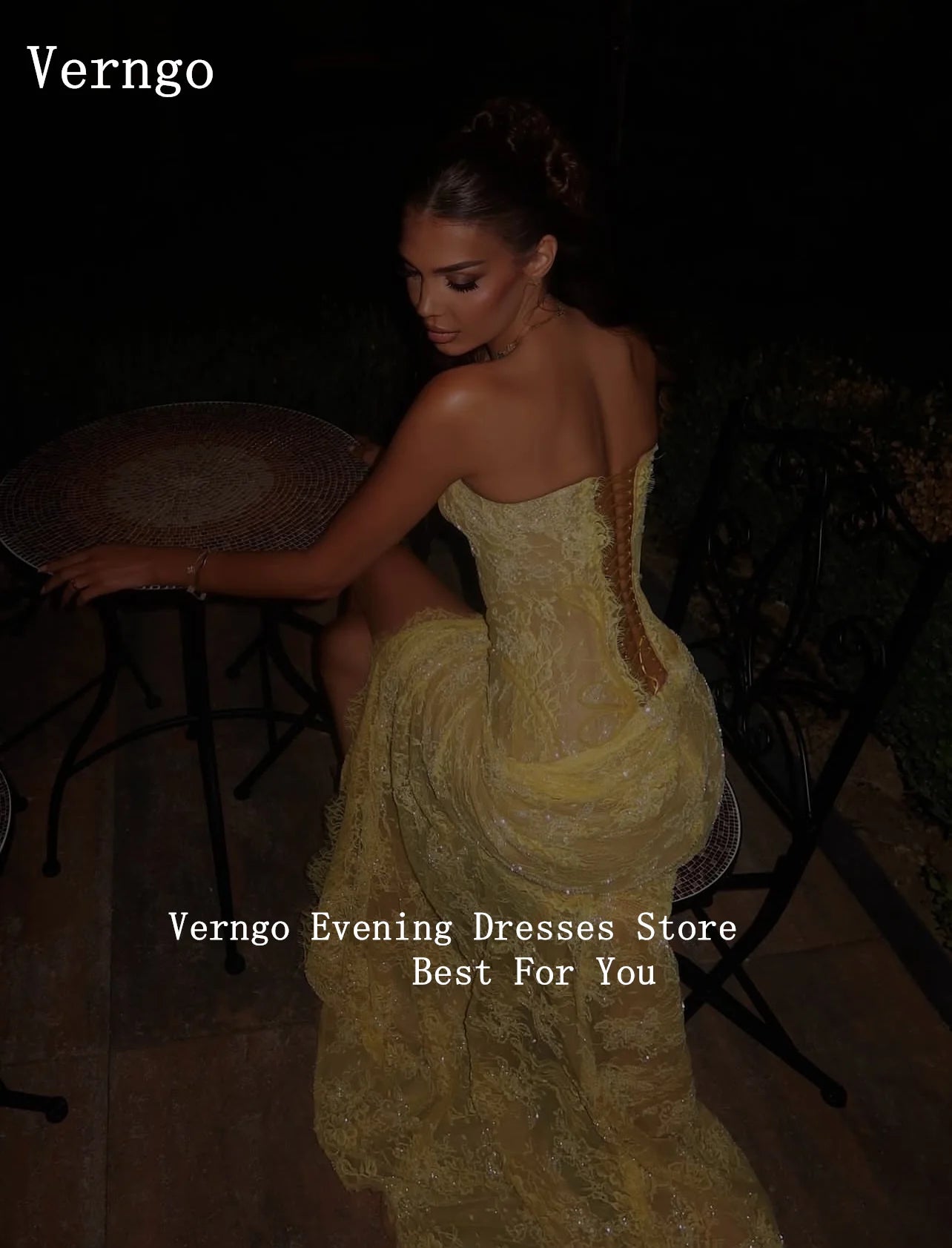 Verngo Yellow Lace Evening Dress Sweetheart Sexy Mermaid Prom Gowns Lace Up Long Formal Occasion Dresses Customized