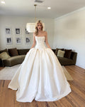 Vintage Strapless Thick Satin Bridal Grown A Line Wedding Dresses Custom Made 2026 Vestido De Noival
