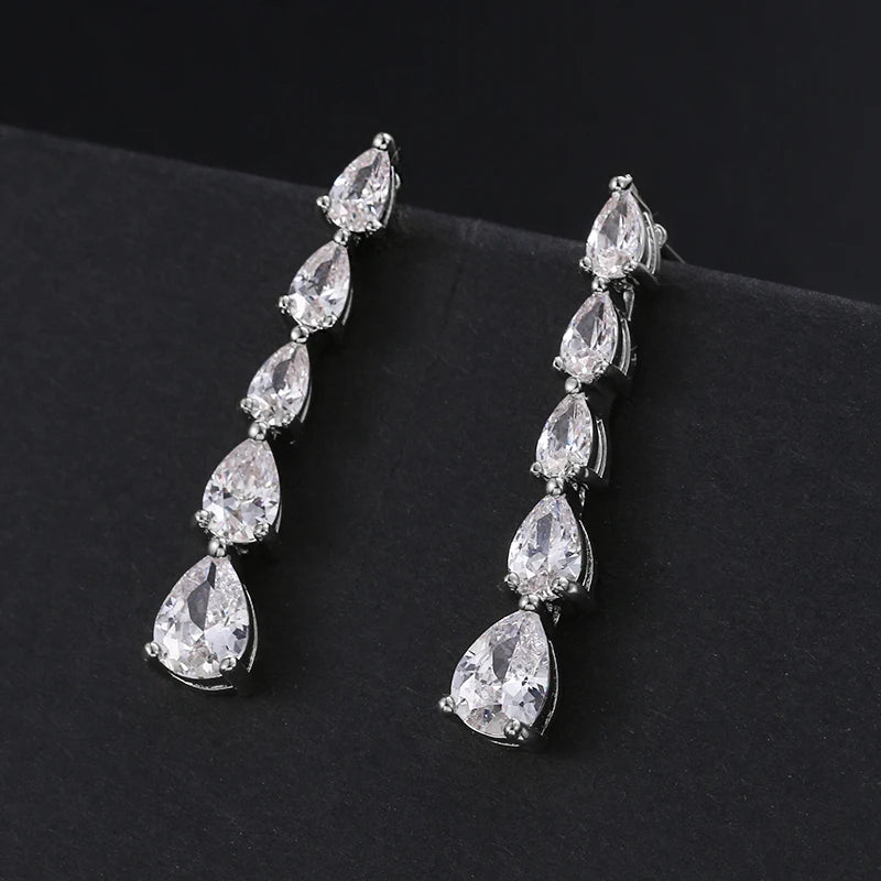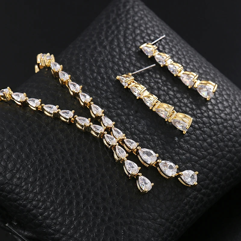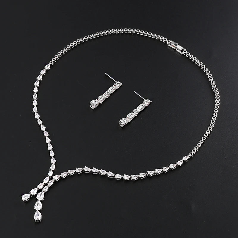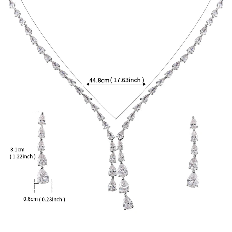 WEIMANJINGDIAN Brand New Arrival High Quality Teardrop Cubic Zirconia CZ Necklace and Earring Elegant Wedding Bridal Jewelry Set