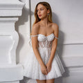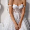 White Off the Shoulder Sequin Wedding Dress Pearl Embellished Straps Sweetheart Neckline Glitter Tulle Bridal Dress Prom Dress