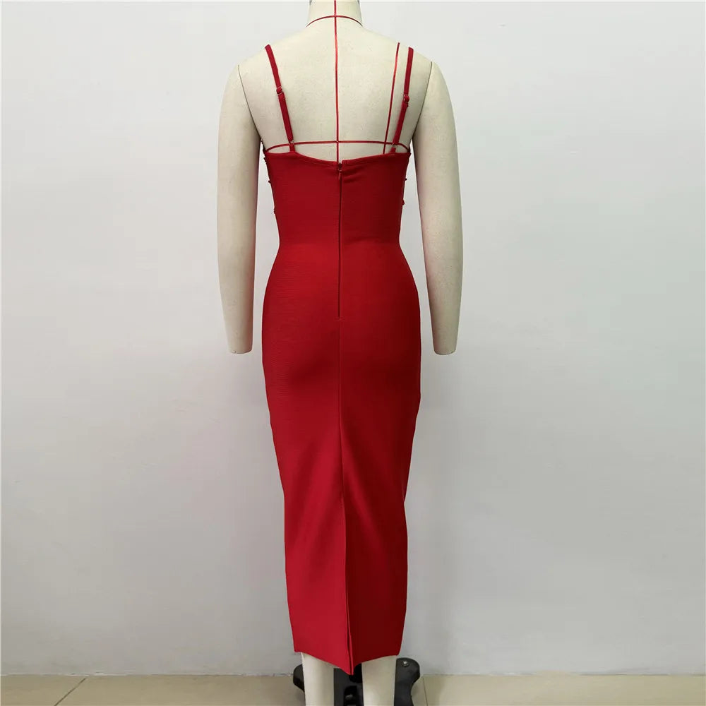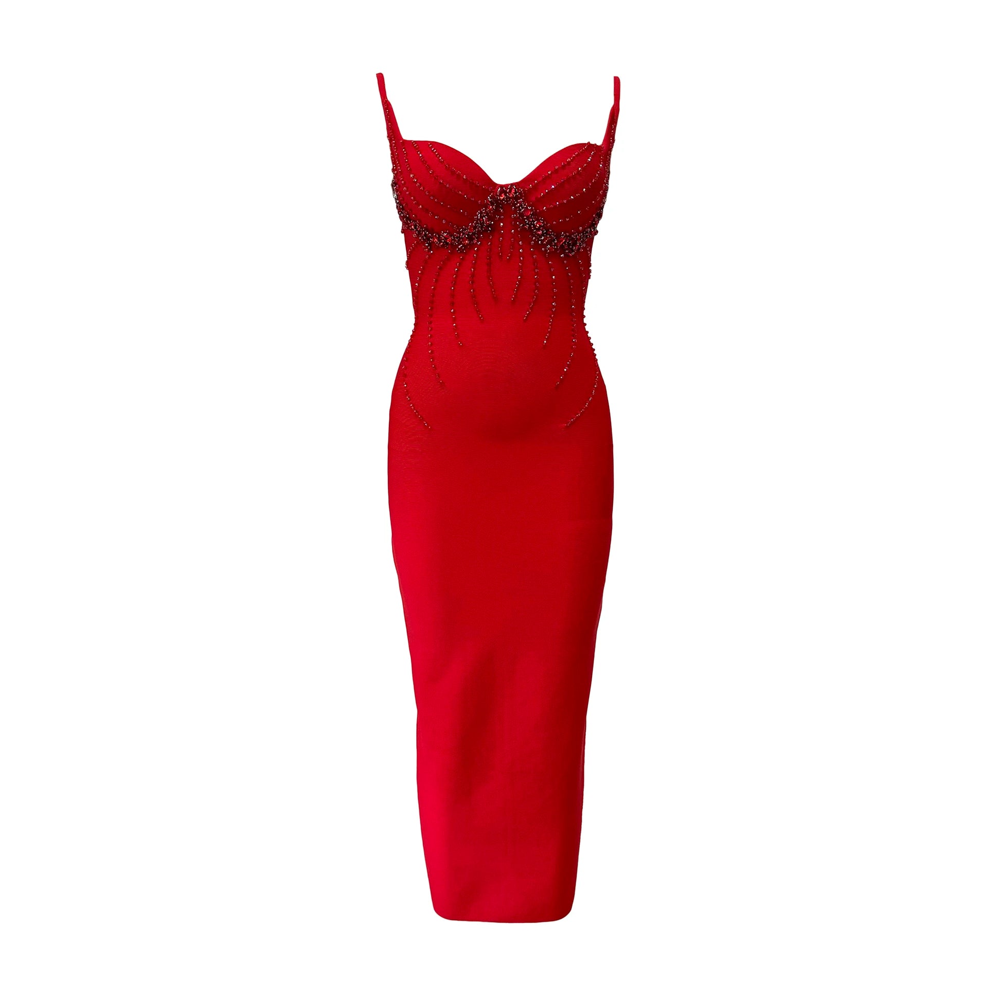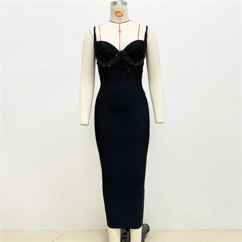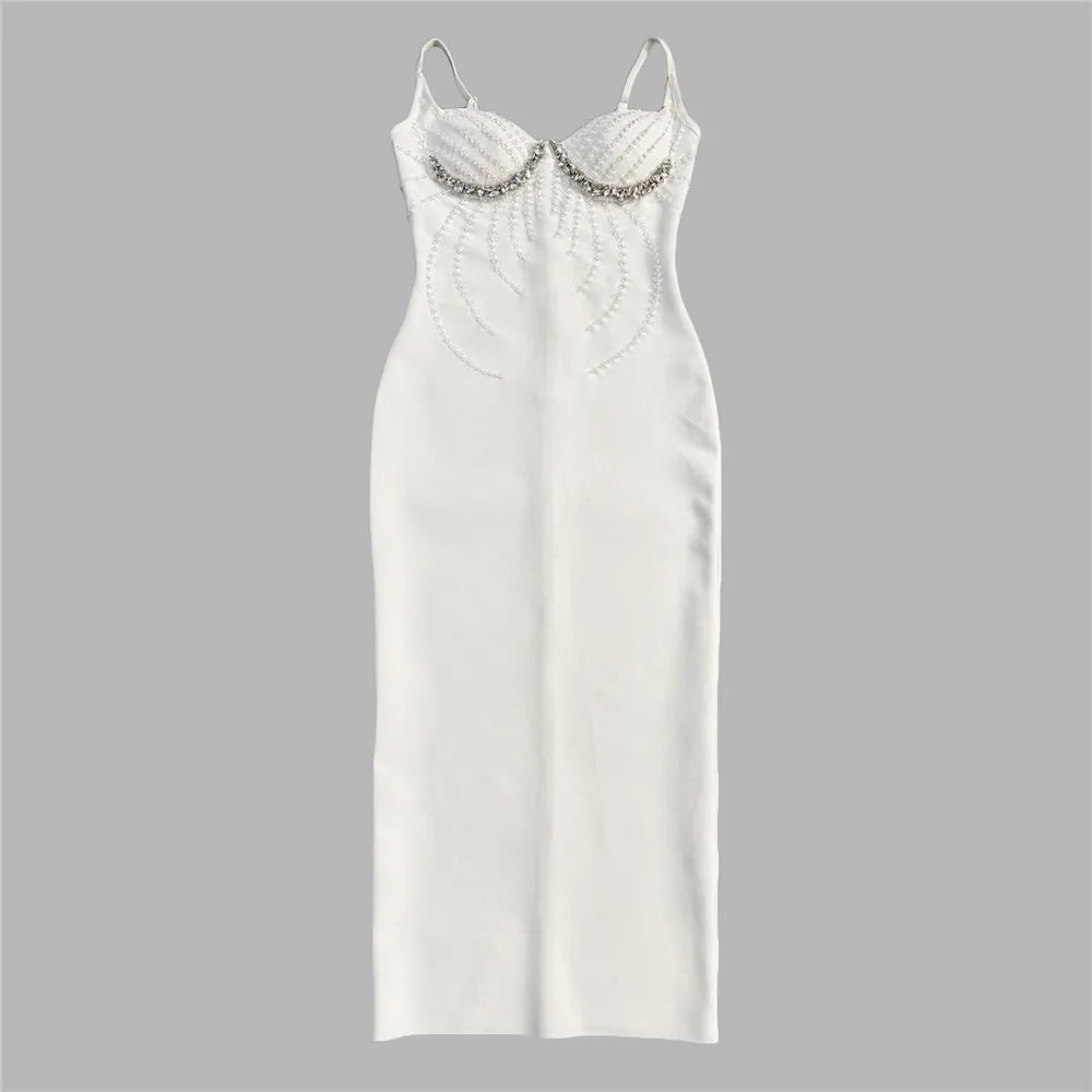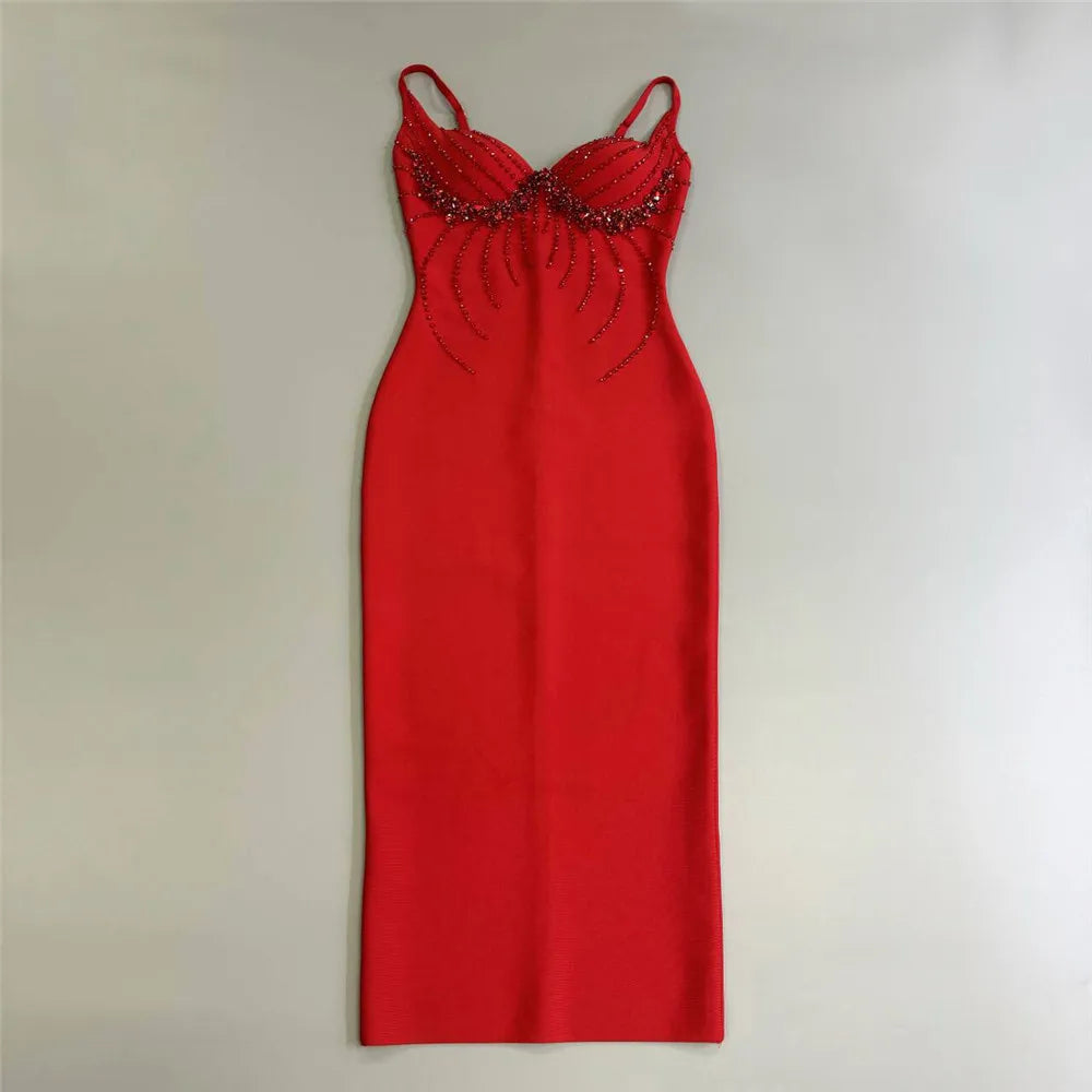 Women Sexy Beading Spaghetti Strap Bandage Dress Bodycon Clothes Club Party Celebrity Elegant Dresses