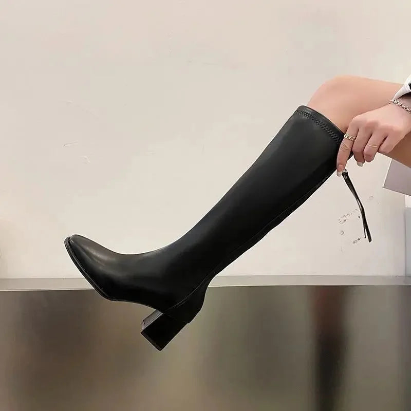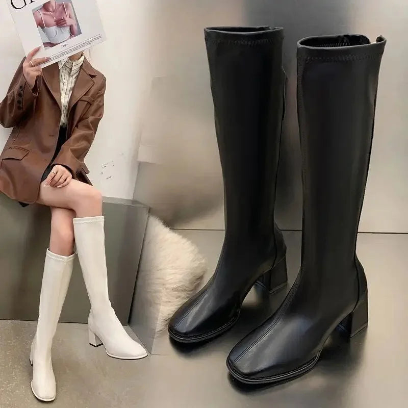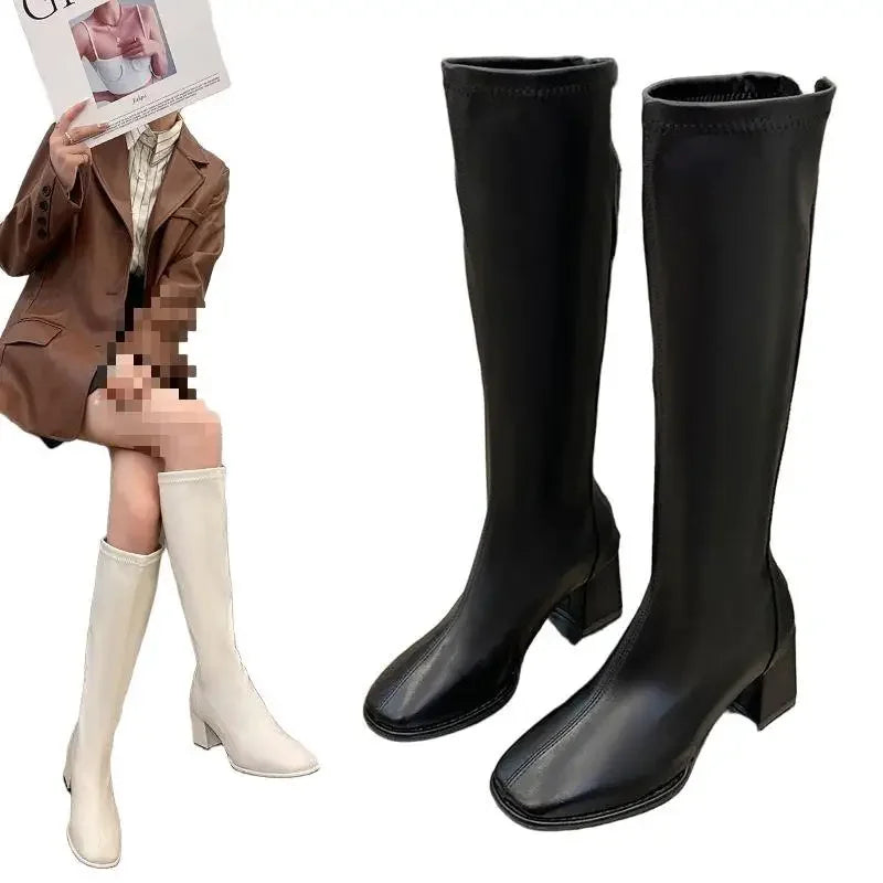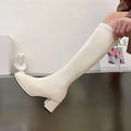 Women's Ankle-Length Knight Boots White over Knee High Boots Spring Autumn Slimming Block Heel Single Boots Rubber Material