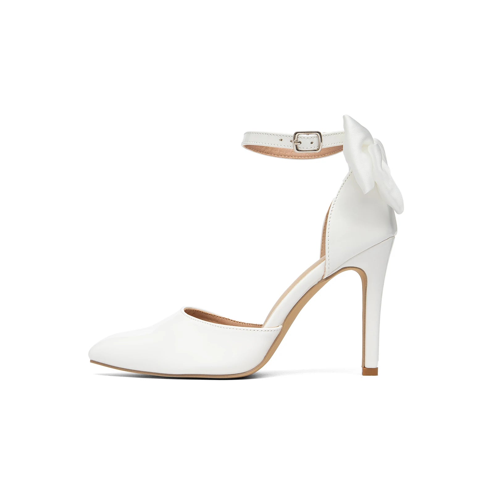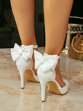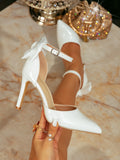 Women's Fashion New Flats White High Heels High Quality Pearlescent Leather Cute Bow Elegant Sexy Wedding Party Bag Heel Baotou Hollow Pointed Toe Shoes Super High Heel Flats