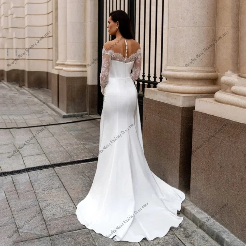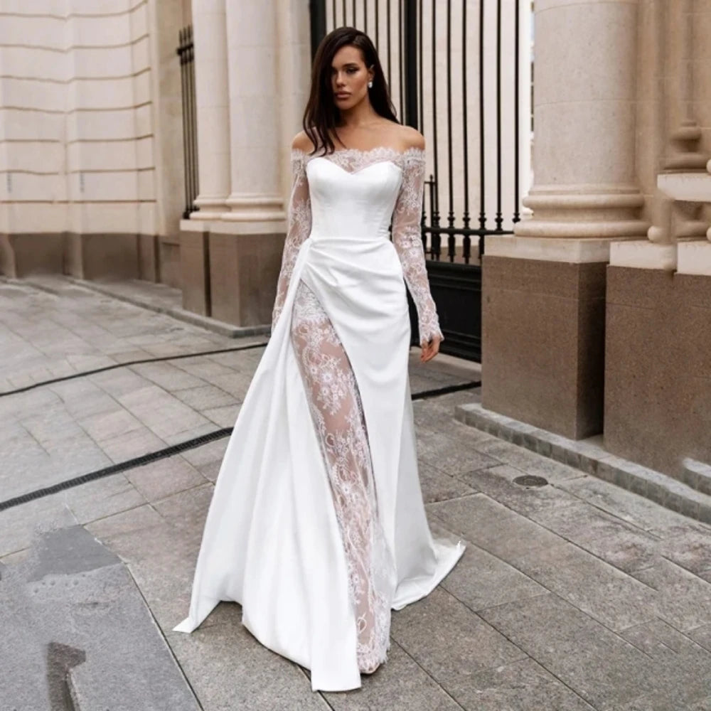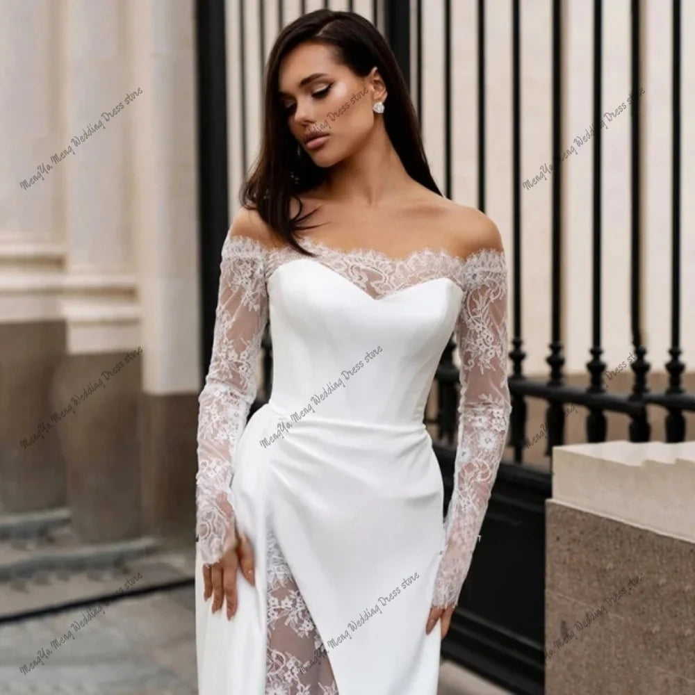 ZHUISHU Elegant Lace Long Sleeves Satin Mermiad Wedding Dress Off The Shoulder Sweep Train Graceful Vestidos De Novia Customized