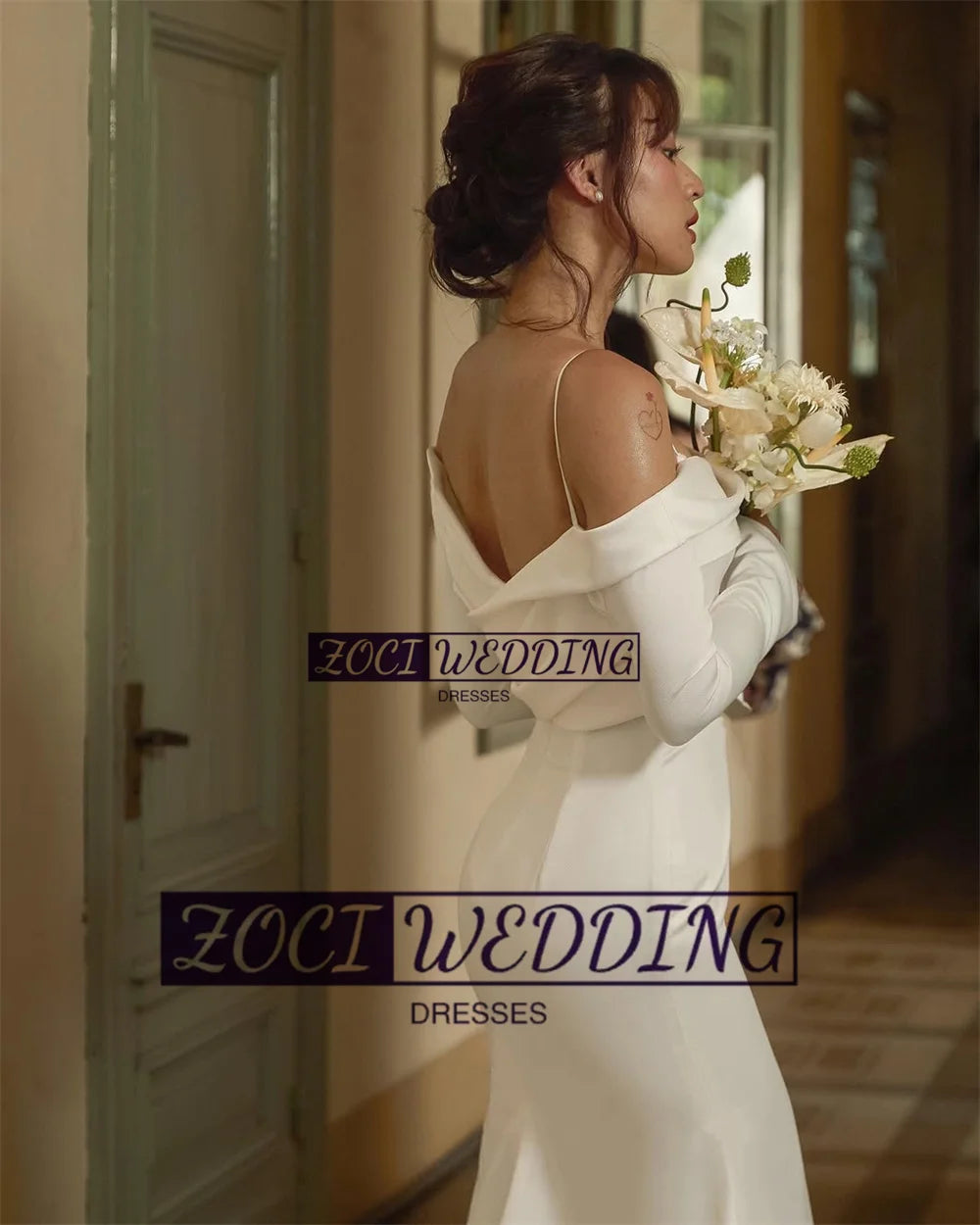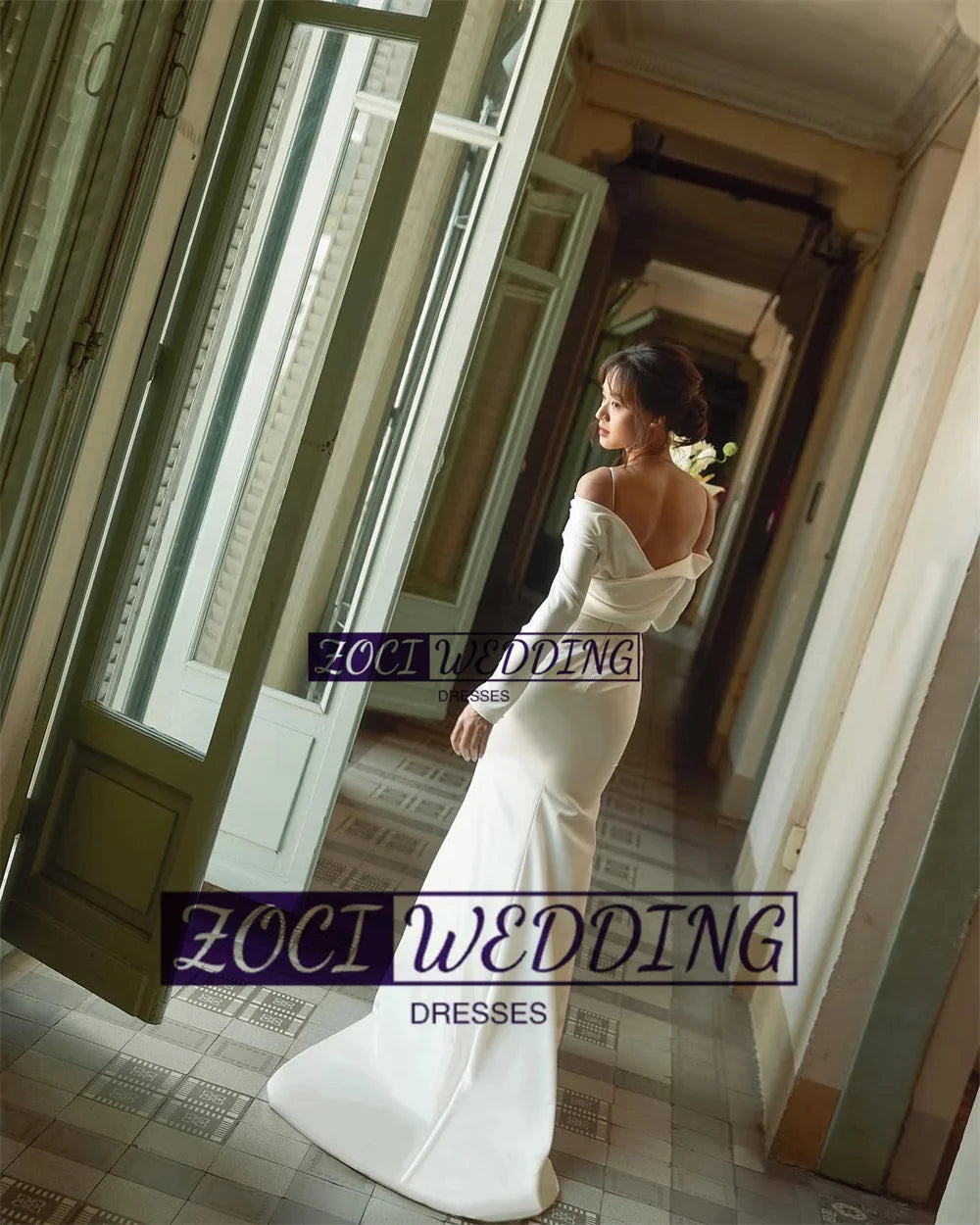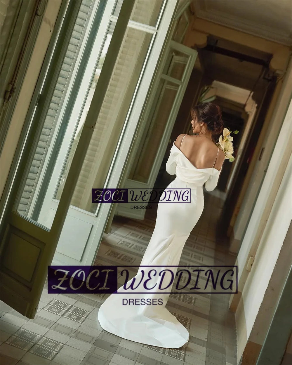 Zoci Elegant Off Shoulder Mermiad Wedding Dresses Spaghetti Straps Wedding Photos Shoot Dress Customized Long Sleeve Bridal Gown
